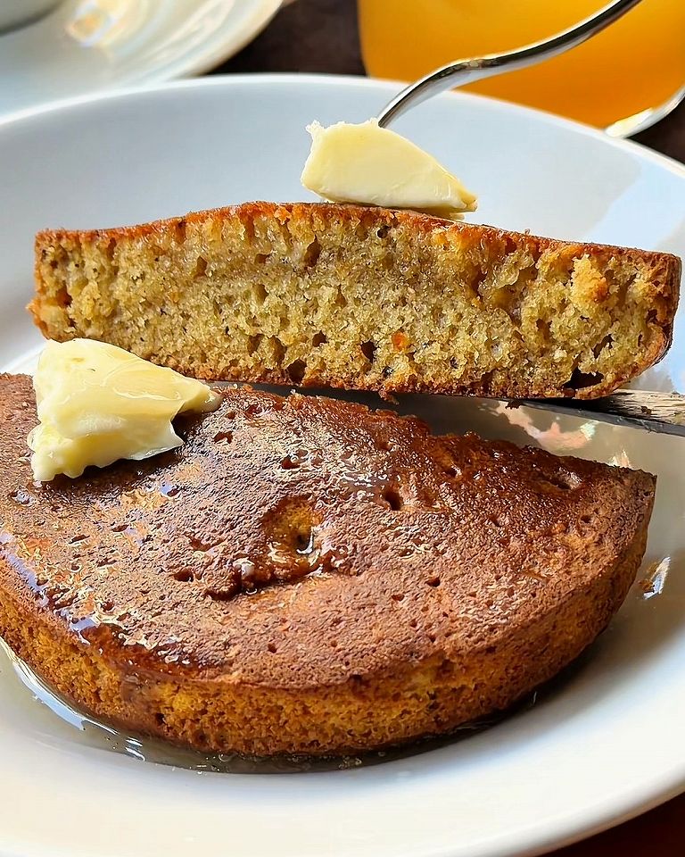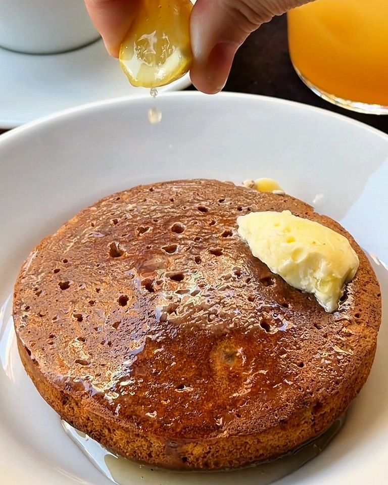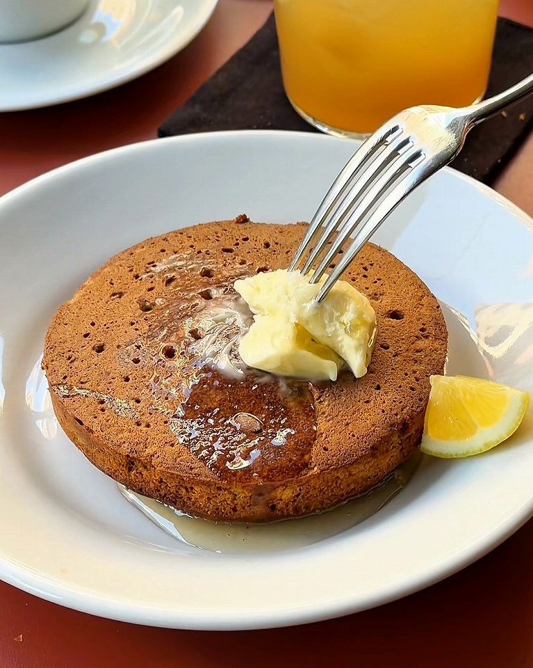 - 全粒粉のパンケーキの小麦香る生地は、外はザクザク中はしっとり