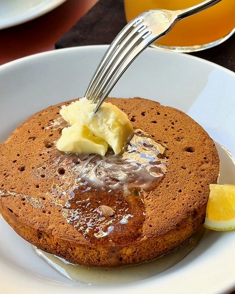- 全粒粉のパンケーキの小麦香る生地は、外はザクザク中はしっとり