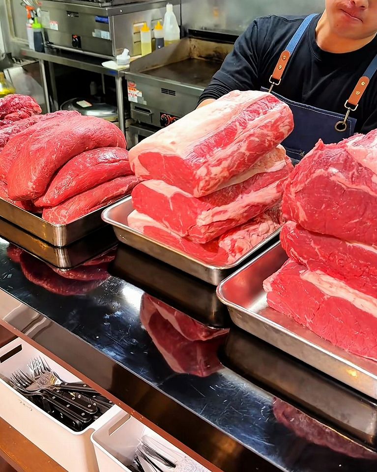 この店は大量仕入れの代わりに値段を安くしているらしいんですが、毎日この量のお肉が出るというので驚きです。お肉が積み上げられた厨房は圧巻です。
