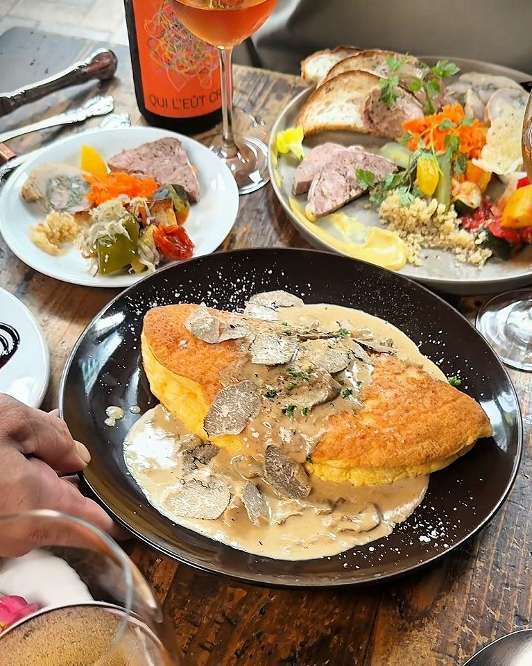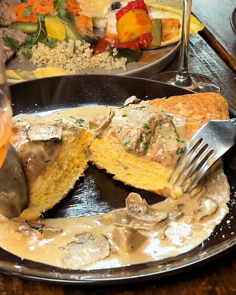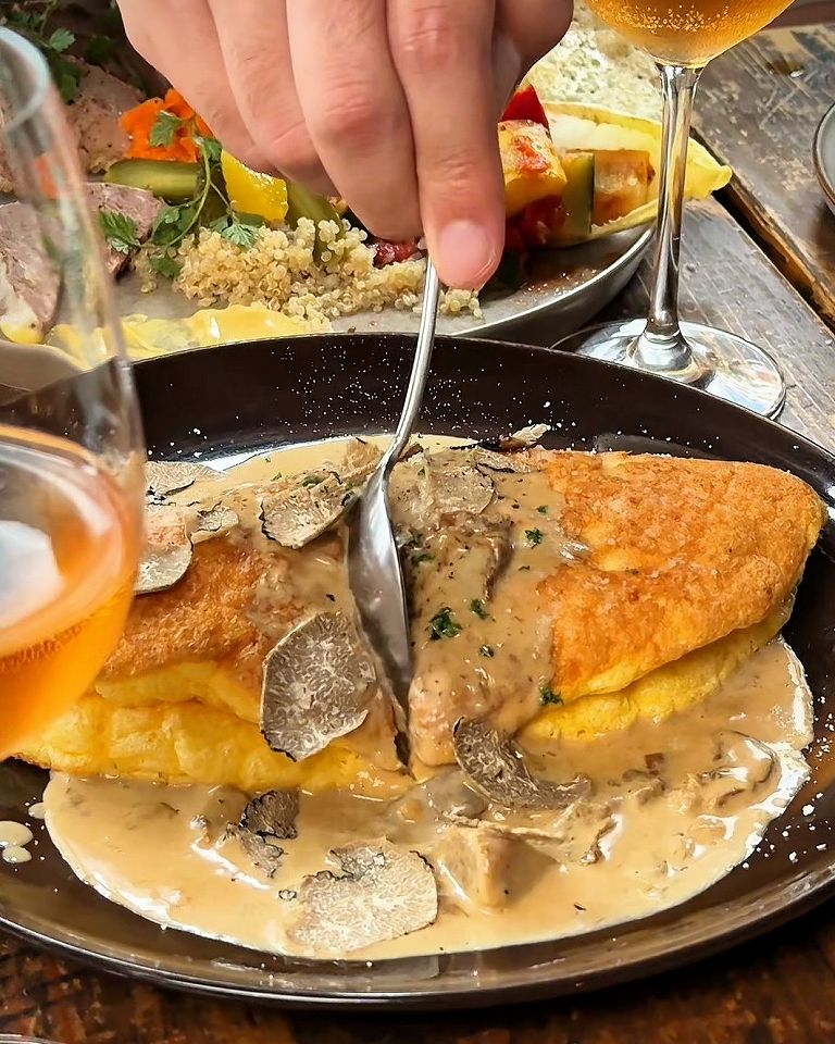 ここの名物、ポルチーニたっぷりのスフレオムレツは、トリュフの香りが鼻に抜け、口に入れるとふわっととろけてめちゃくちゃ美味いです!口いっぱいに広がる香りと食感がたまりません。