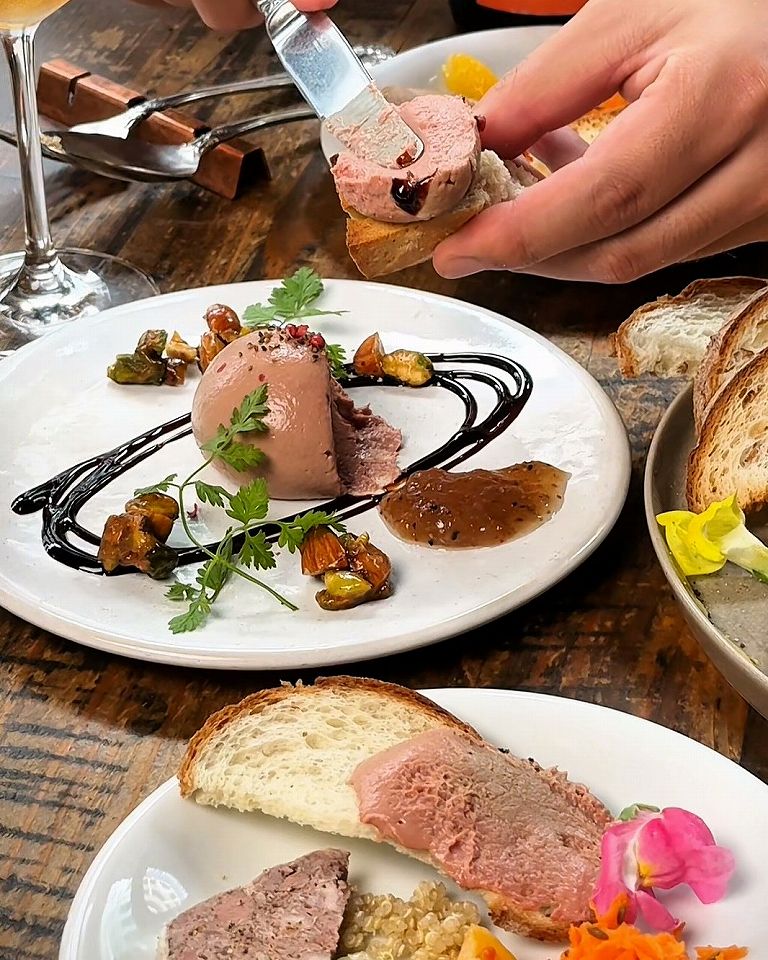 ビストロ チック 麻布十番(Bistro Chick)では他にも、「鶏白レバーのムース イチジクと黒コショウのジャム」や、「マグロのタルタル キヌアのタブレとオマールジュレ」「富士山サーモンとキノコのアヒージョ」などカジュアルなフレンチがいろいろ楽しめます。