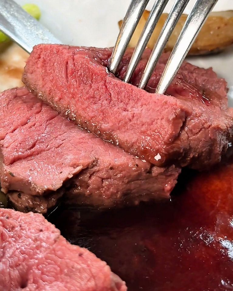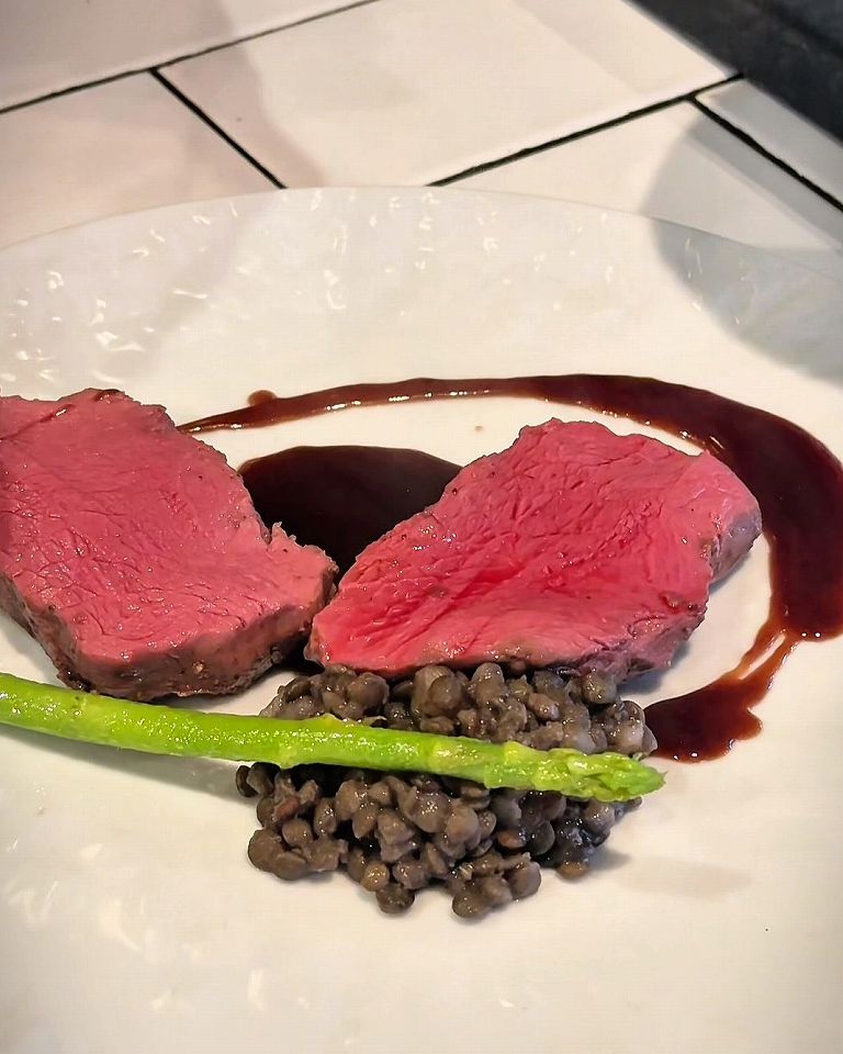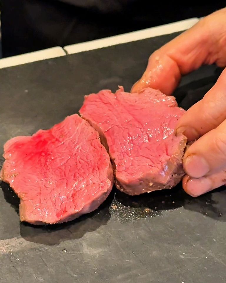 そして、北海道から届く蝦夷鹿のロースは絶妙な火入れで、旨味の強い赤身肉とワインのマリアージュは最高すぎます!シェフの技術が光る仕上がりで、一口ごとに旨みが引き立ちます。