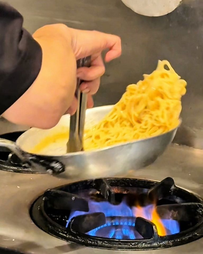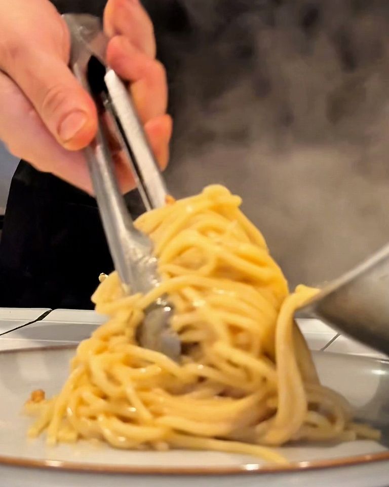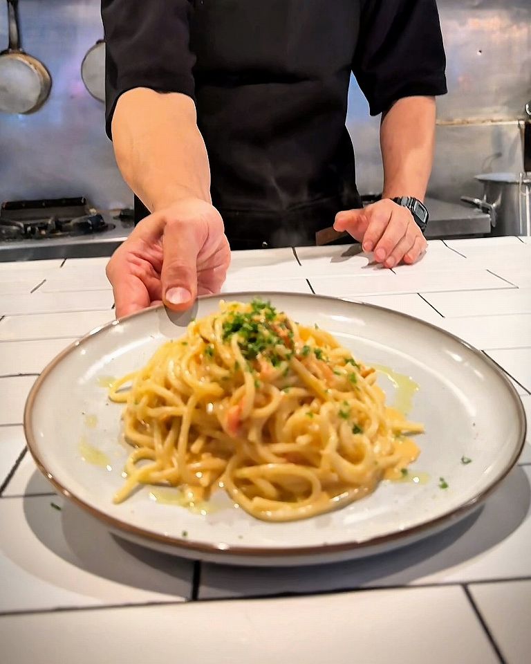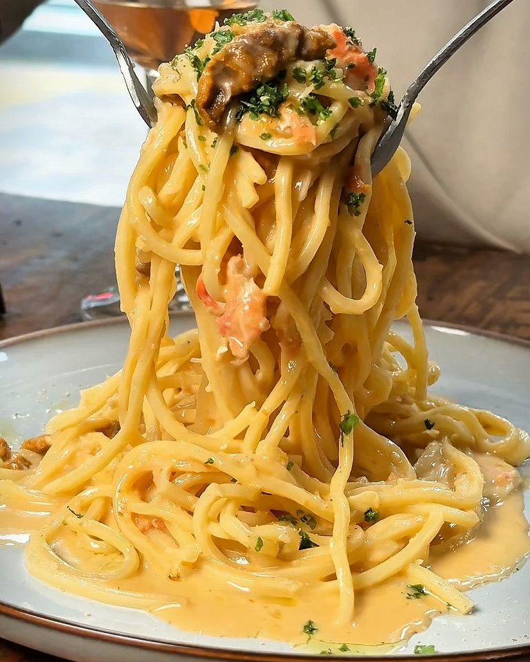 そして、パスタはズワイガニと雲丹の旨味がギュッと詰まったソースに、もっちり食感の太麺が相性抜群です!海の幸ならではの香りと旨みが凝縮されている至福のパスタです。