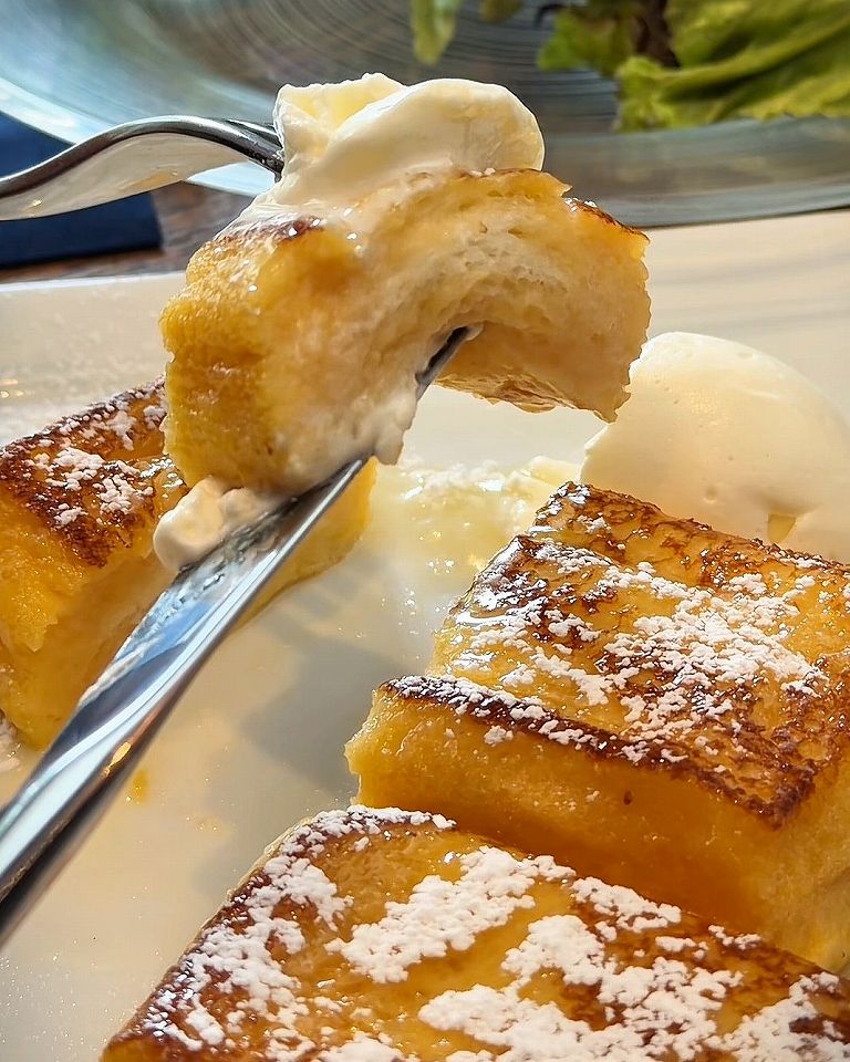 10時間もの間しっかりと浸け込んでから、外をカリッと焼いて、その後オーブンで中までふっくら仕上げる二度焼き製法で、外はさっくり、中はプリンのようにトロトロで、これがもうめちゃくちゃ美味しいんです!食感が絶妙で、最後まで飽きずに楽しめます。