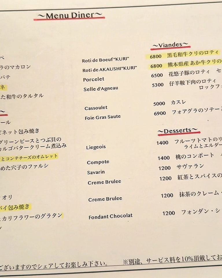 - 初めて行くなら、メニューの蛍光ペンのところをオーダーすれば大丈夫