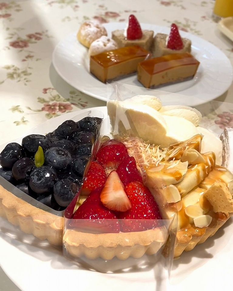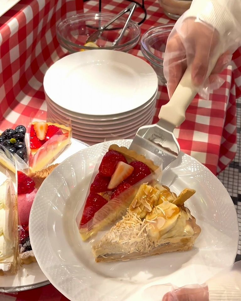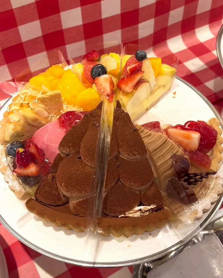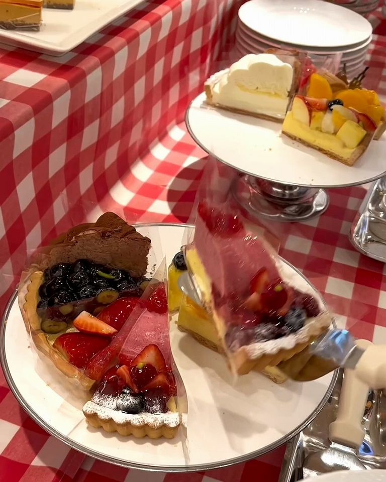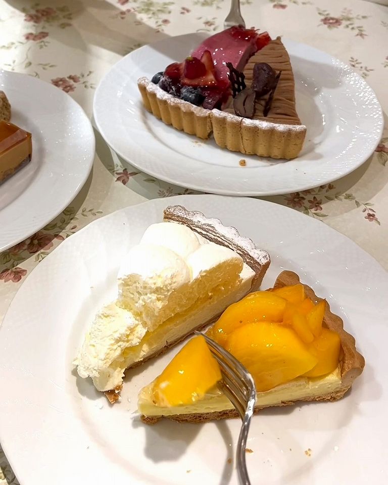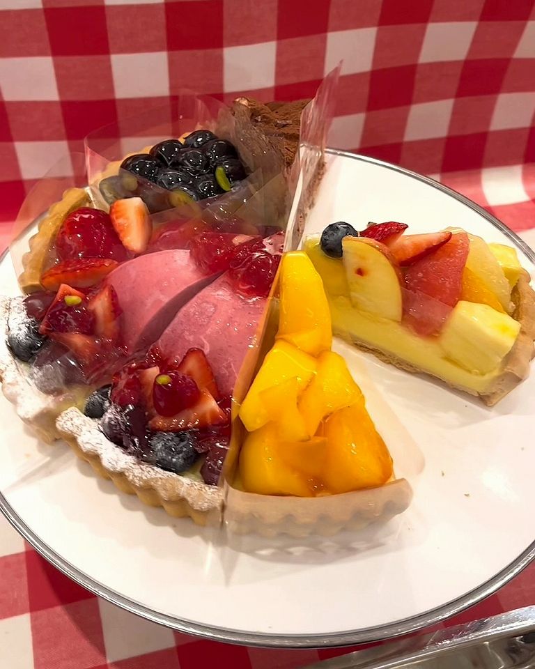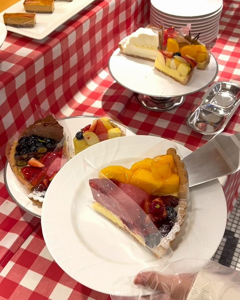 旬のフルーツをたっぷり使った贅沢なタルトがズラリと並んでて、好きなものを好きなだけ楽しめちゃいます。サクサクのタルト生地とジューシーな果実の組み合わせがたまりません。