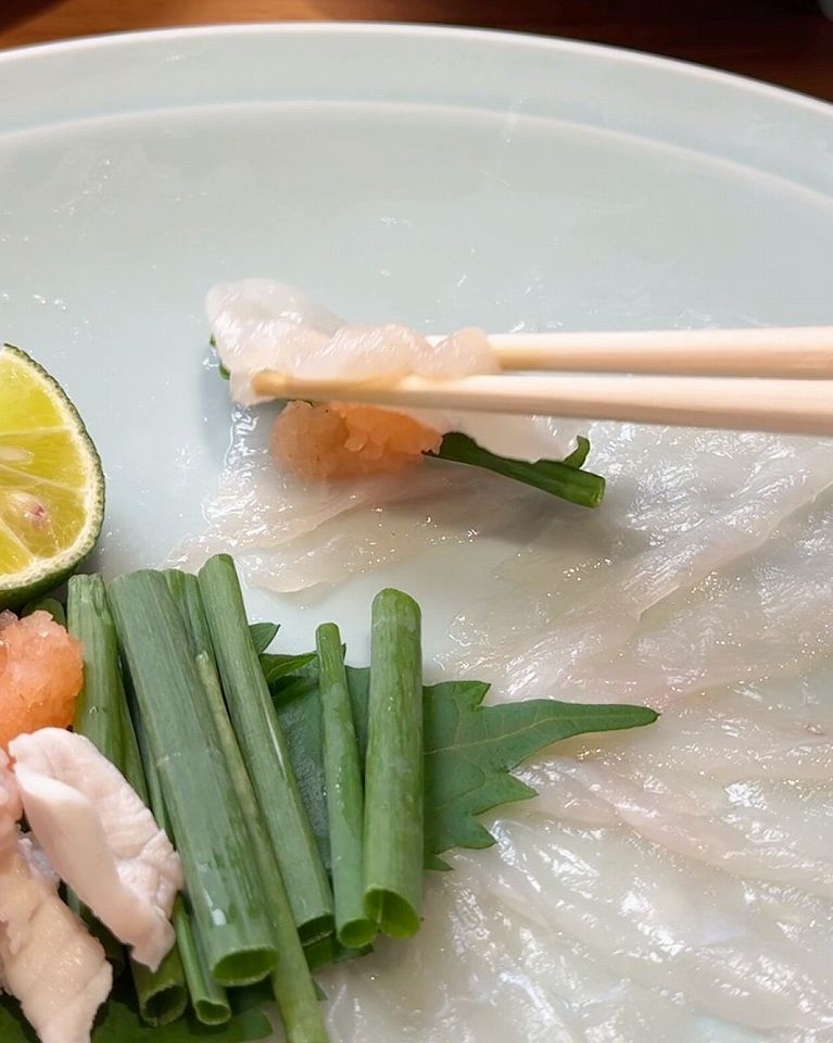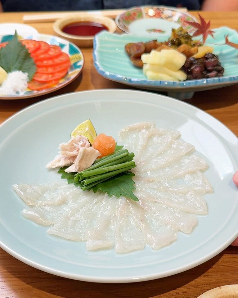 このフグ刺しはなんと3200円です!プリッとしていて美味しそうです。