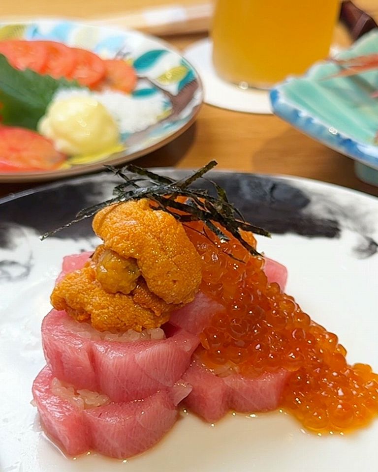 「本マグロ中トロ 雲丹いくら乗せ」(2800円)に「本まぐろ中トロのレアかつ」(3200円)と、フグ以外の海の幸も充実しています。