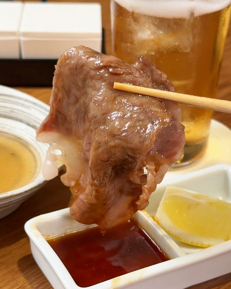 ここはフグも焼肉も一皿からフルアテンドで焼いてくれるので、最高の焼き加減で食べることができます。