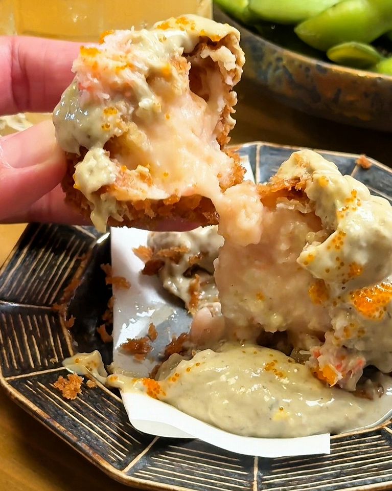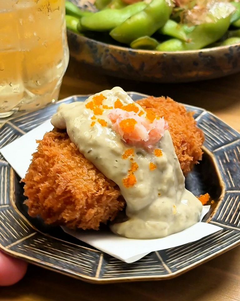 - トロトロな和牛の炙りユッケ、濃厚なカニクリームコロッケに、サーモンといくらのせいろご飯までとにかくリーズナブル