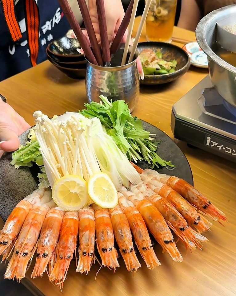 そして1番美味かったのが、この海老の頭で旨みがたっぷり溶け込んだ海老しゃぶしゃぶです!スープは濃厚な旨みがぎゅっと詰まっていて、海老好きは是非頼んでほしい逸品です。