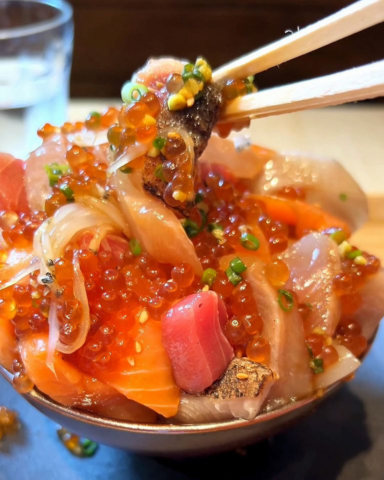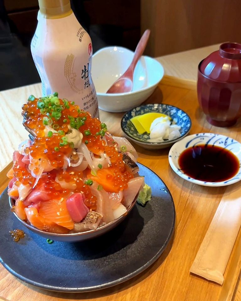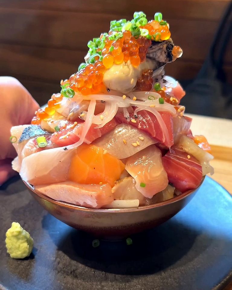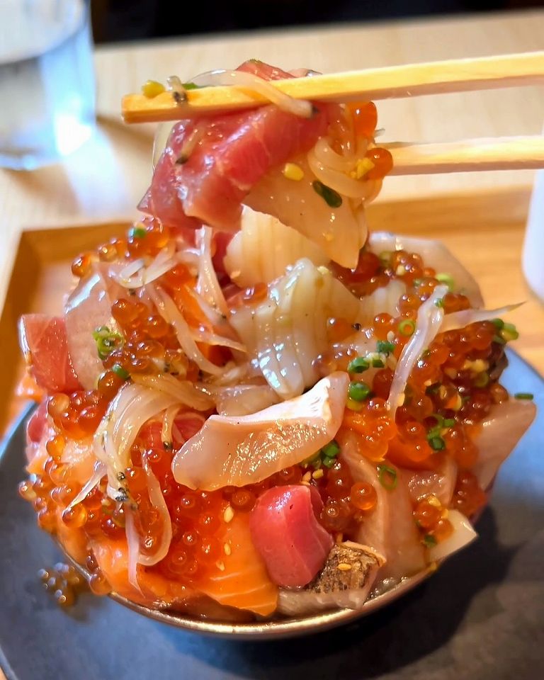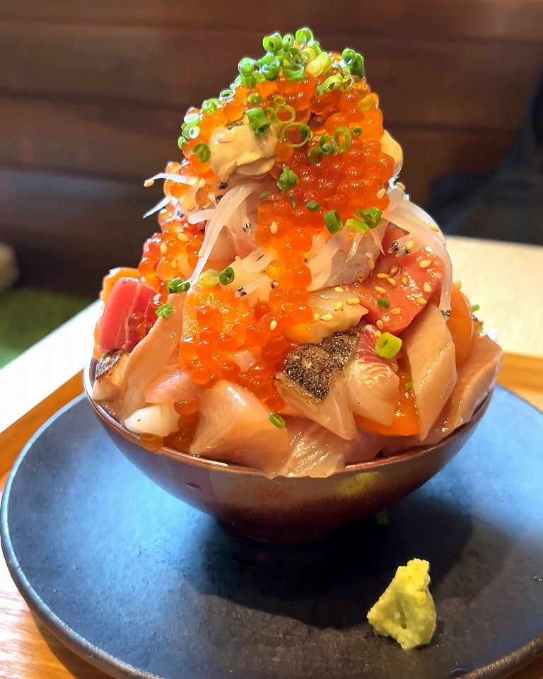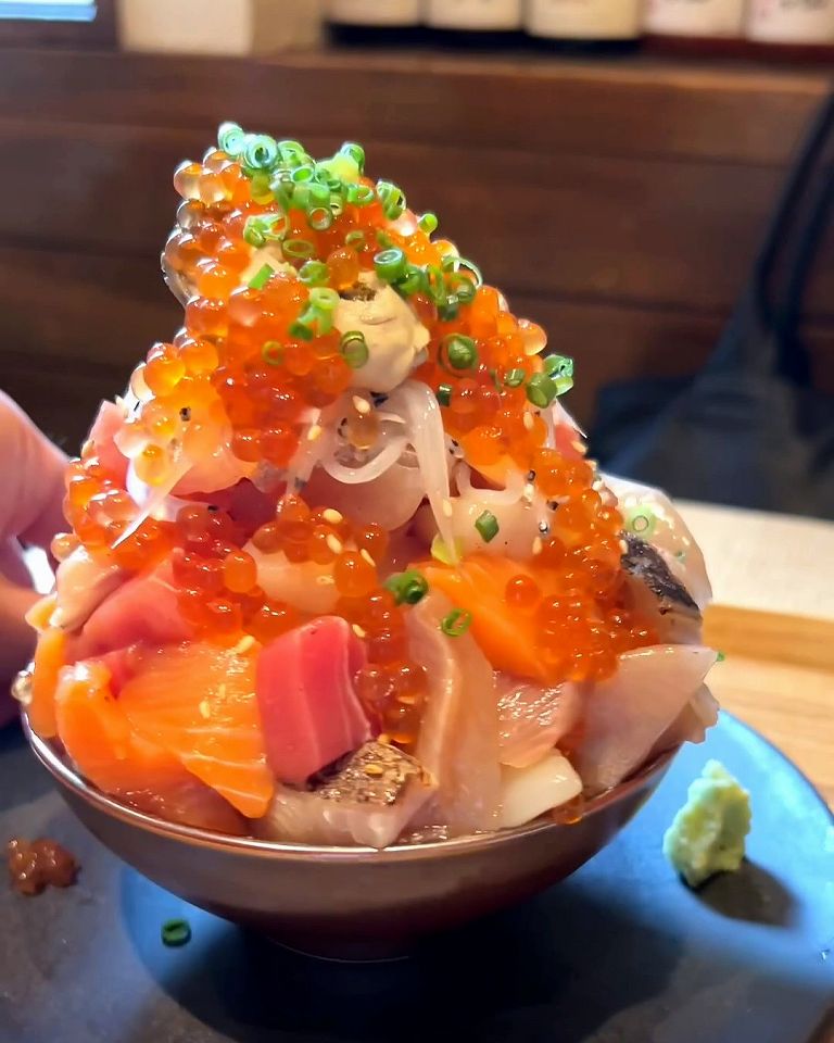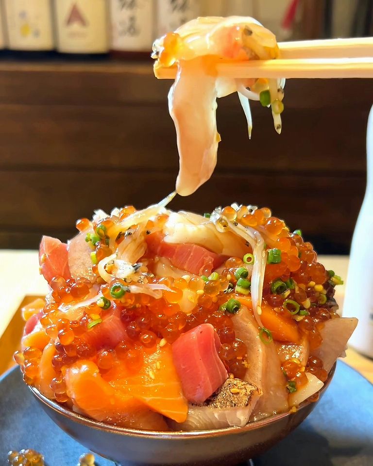 渋谷にある牡蠣と和食専門店の「Ikkoku」で、平日のランチ限定で食べれるのがこの山盛りに盛られた豪華な海鮮丼です!新鮮な魚介がたっぷり盛り付けられていて、まるで宝石箱のようなビジュアルです。