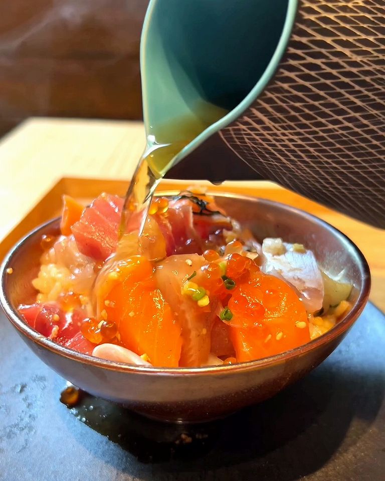 - 後半は出汁を入れてとっても贅沢な海鮮茶漬けも楽しめる