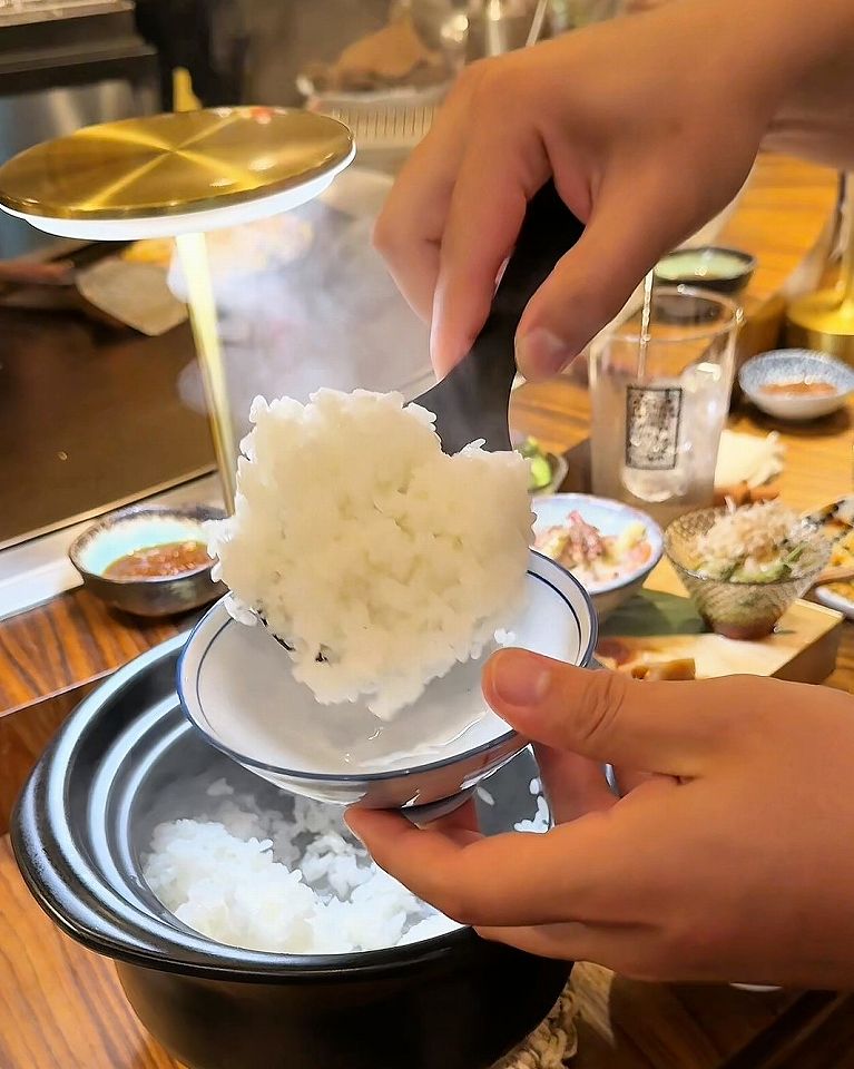 • 毎朝精米したお米を土鍋で炊いてくれる