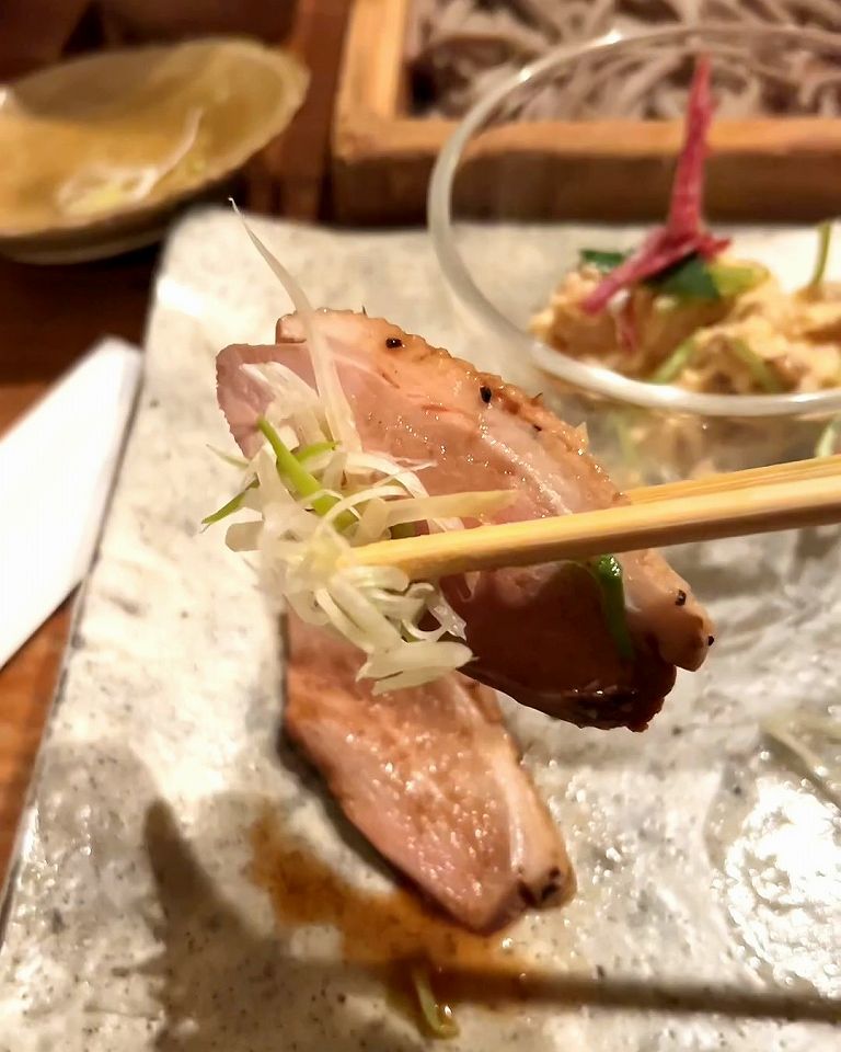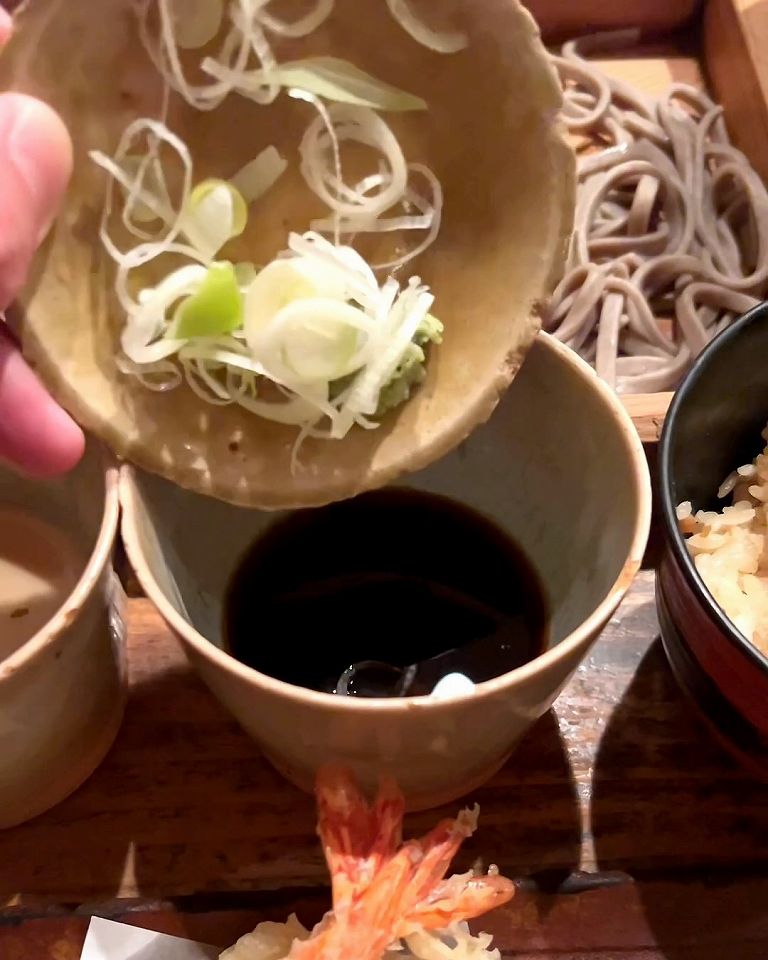 蕎麦はお出汁と胡麻ダレの2種類のタレが付いてきて、太くてコシのあるお蕎麦との相性は抜群です!最後まで飽きずに食べれちゃうんですよね。どちらのタレもお蕎麦の風味を引き立てて、最後の一口まで楽しめます。