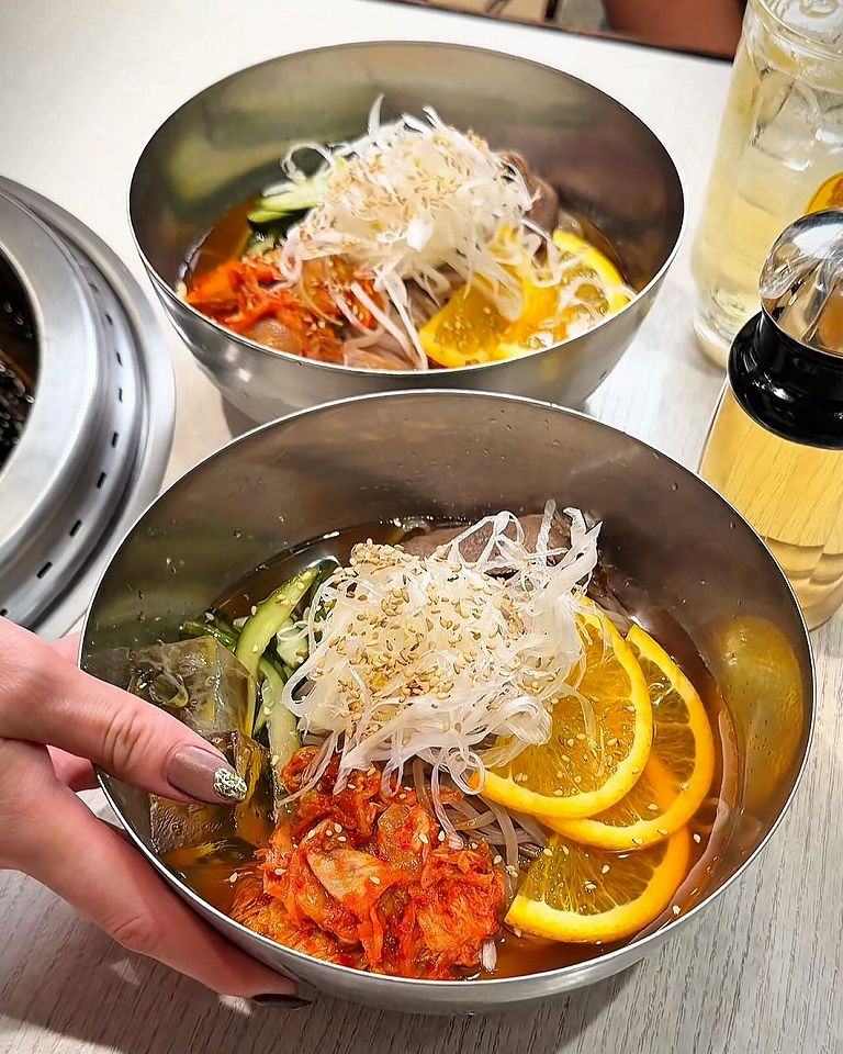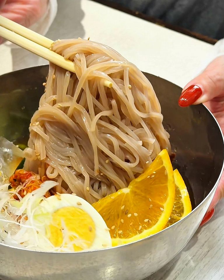 - なぜかオレンジが入ってる冷麺も食べ納め