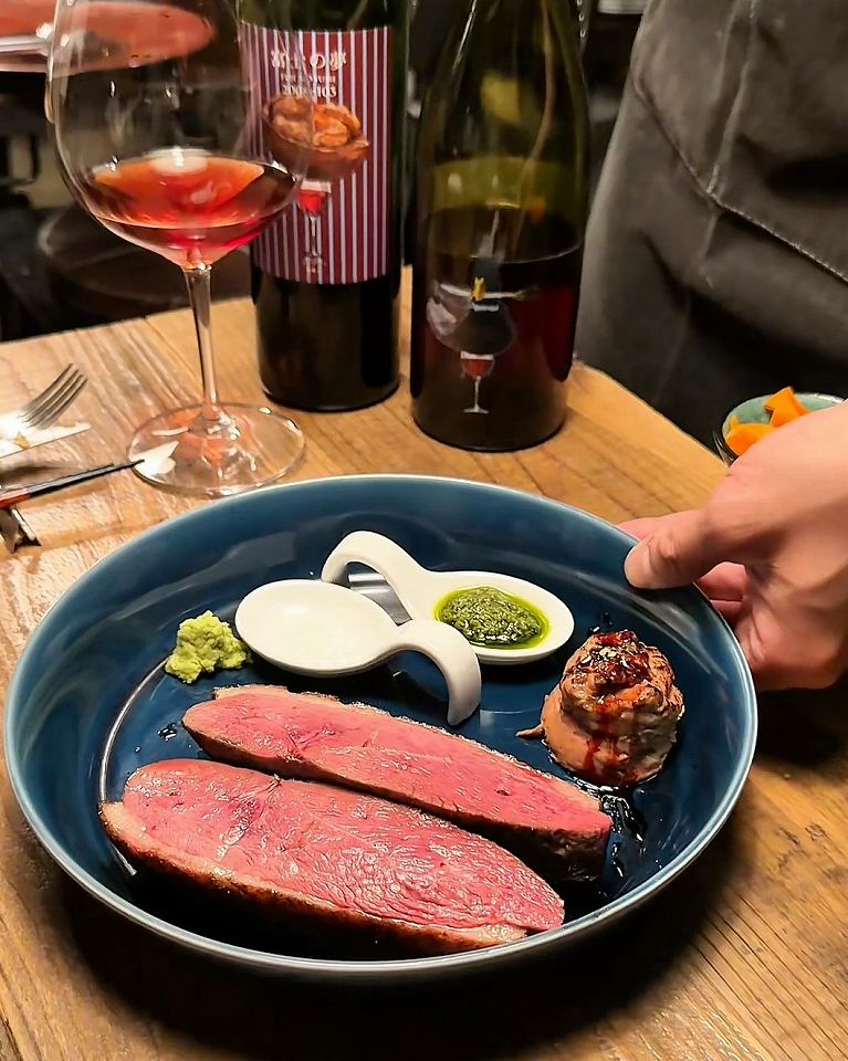 鴨に合わせるのは自社ワイナリーの日本ワインです。これがフレッシュな味わいで旨味が強い鴨料理には最高に相性が良いです!ポーションがちょうど良く、2人でシェアしやすいものばかりでワインが進みます。鴨の旨みを引き立てる組み合わせが最高です。