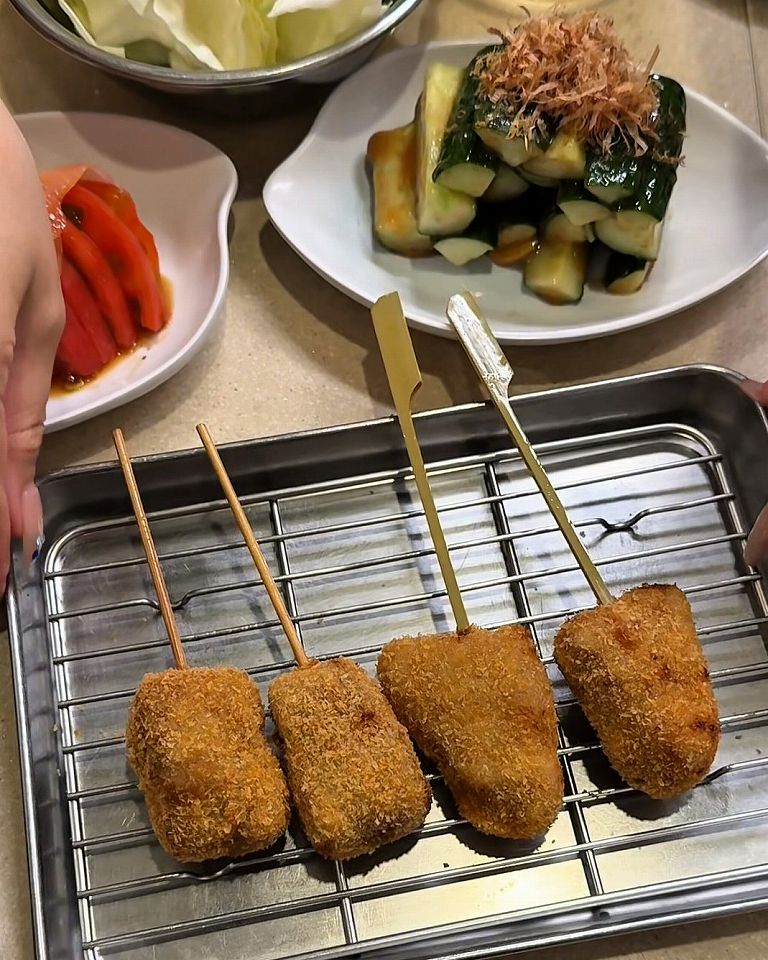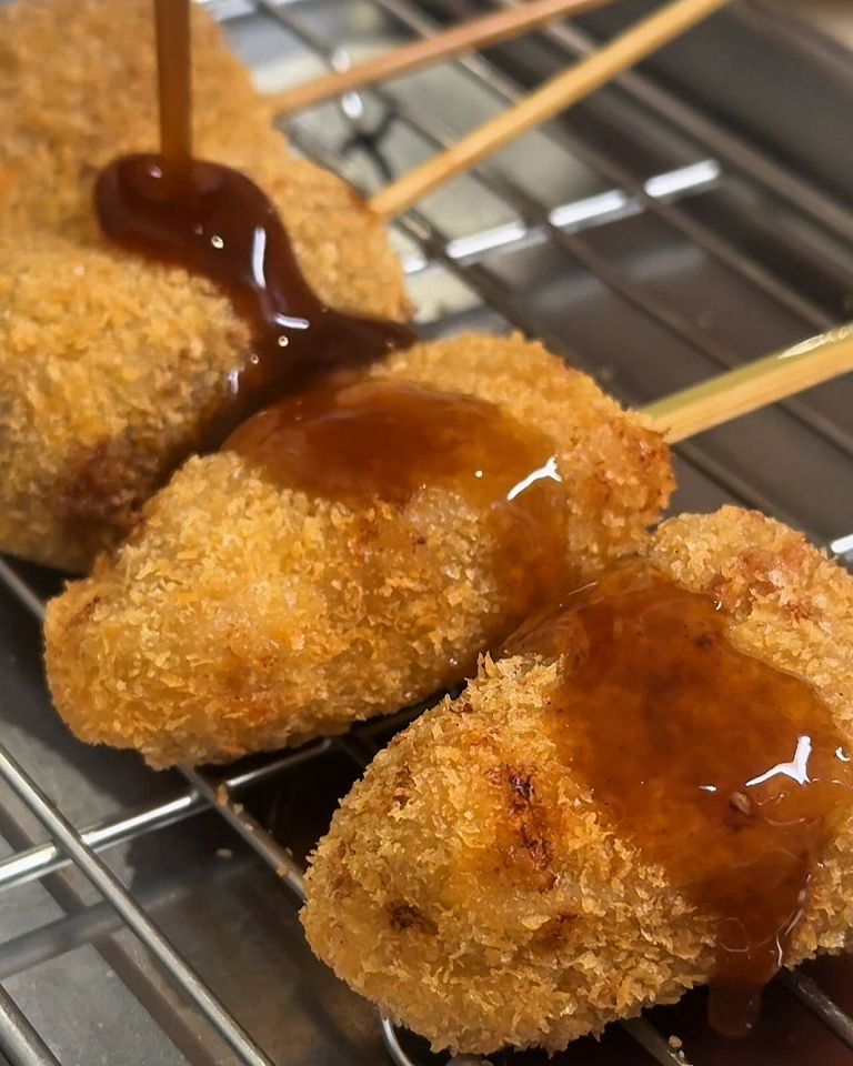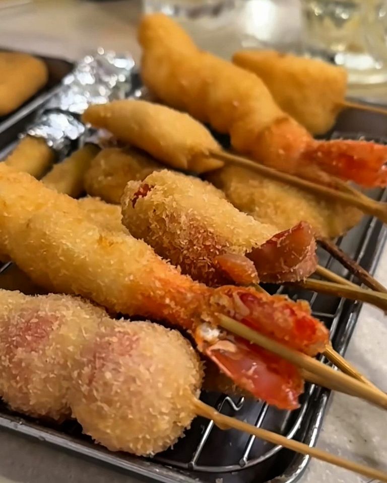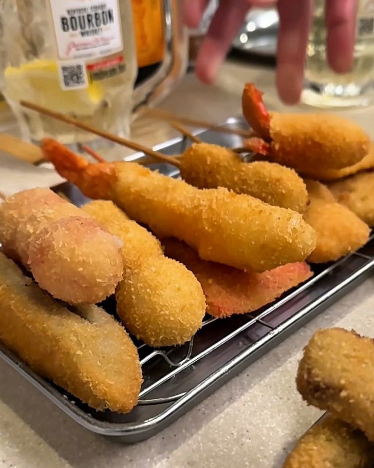 - 串カツは薄くてサクサクの衣がマジで美味しい