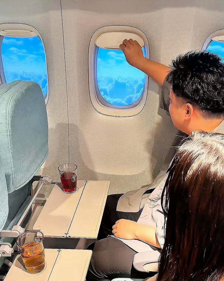 上の棚にスーツケースをしまったり、窓を開けて空を眺めたりなんかして、ホントにこれから韓国に行くようでした。