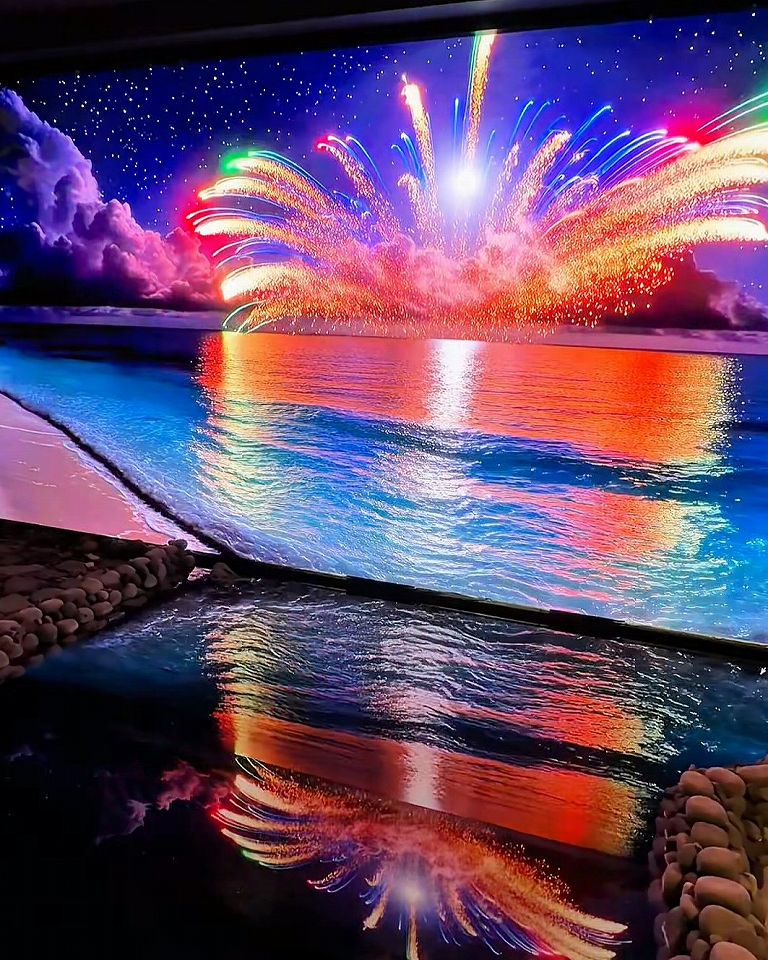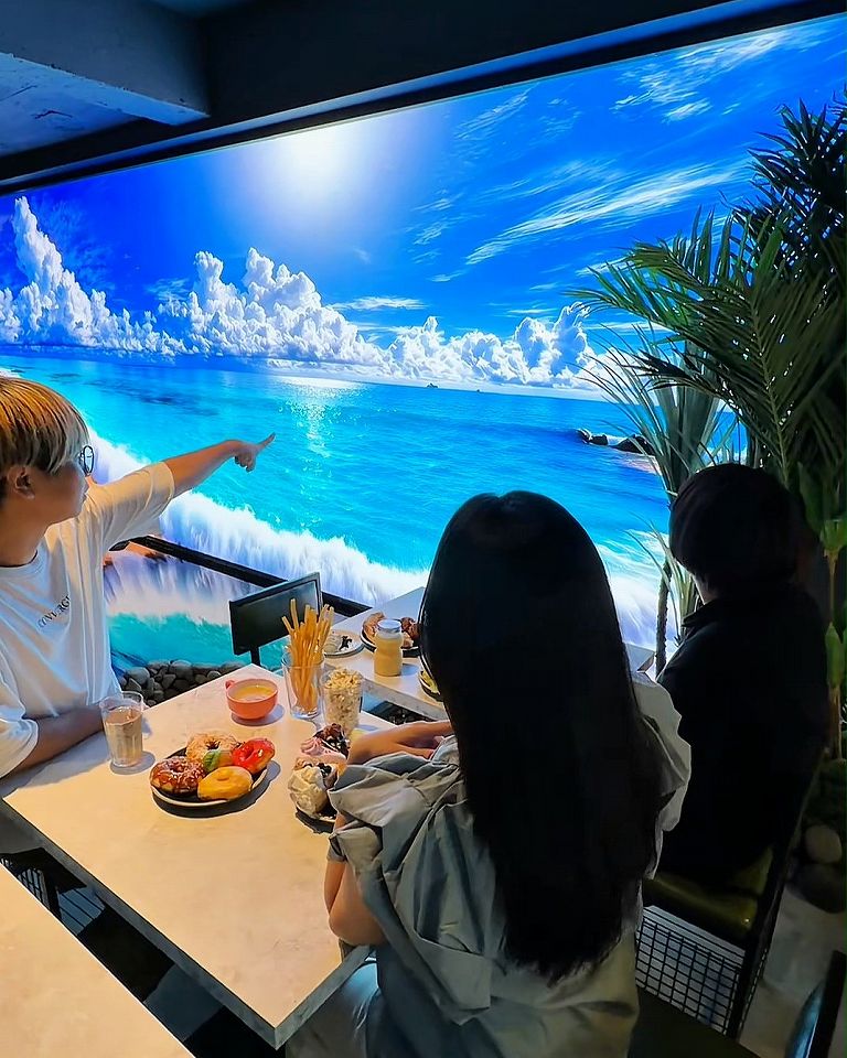 食事スペースの壁には済州島をイメージした景色が映し出されていて、どんどんリゾート気分が高まってきます!