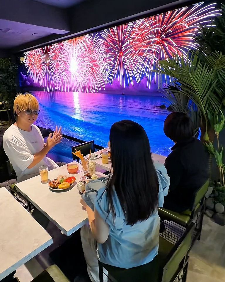 • 店内が仁川空港や済州島のビーチのように作られていて、もう韓国に旅行に来た気分