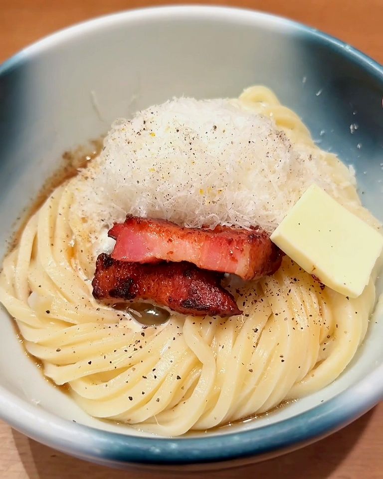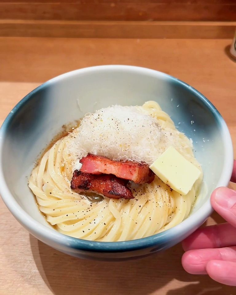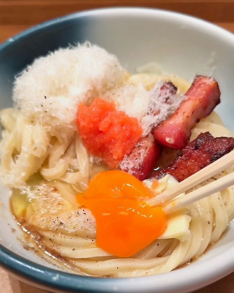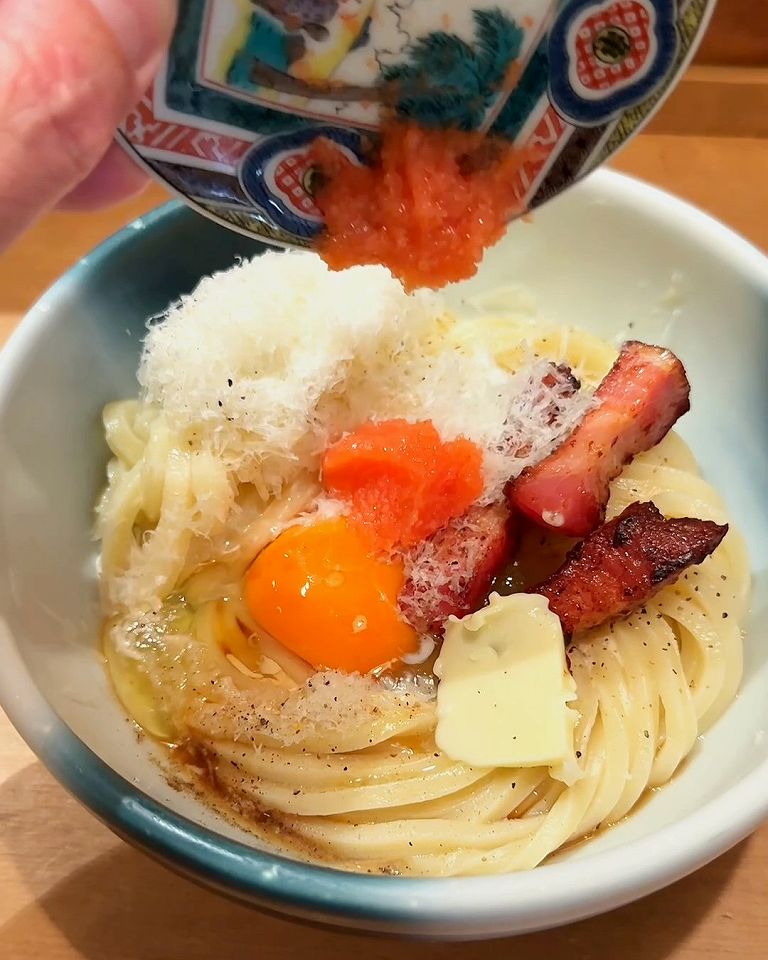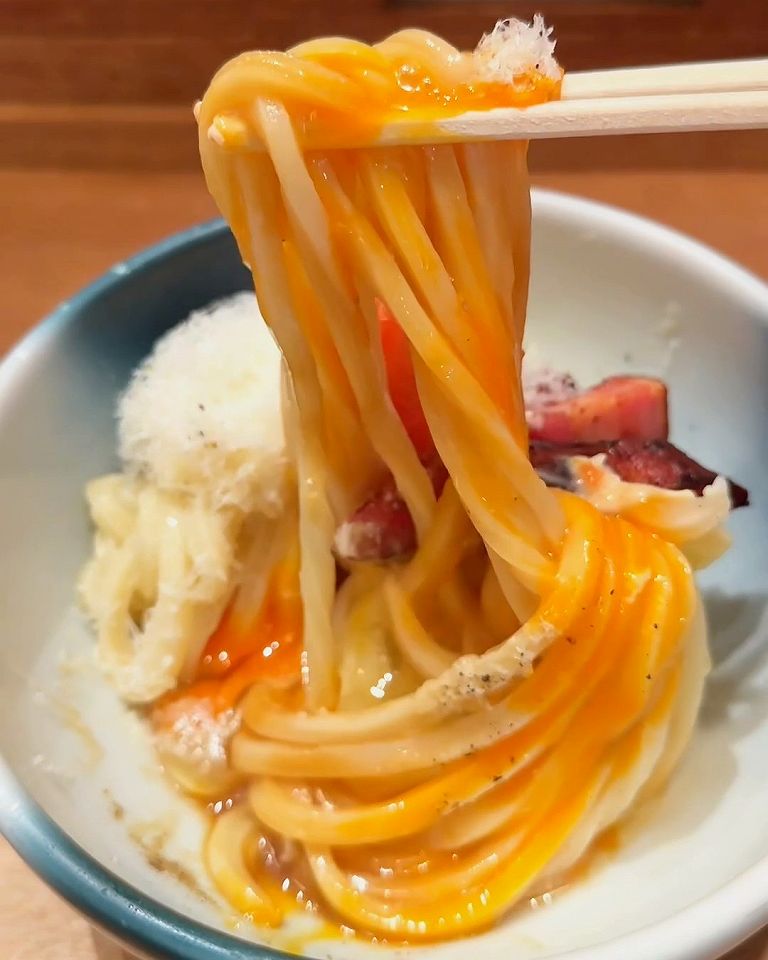 • 濃厚な卵黄が麺に絡んでまろやかにまとめてくれて、めちゃくちゃ美味しい
