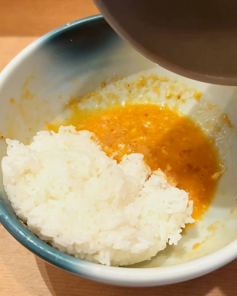 あと、これメニューに載ってないですし、誰も知らないんですけど、実はライス単品が注文できて、これを最後にドボンと投入します!