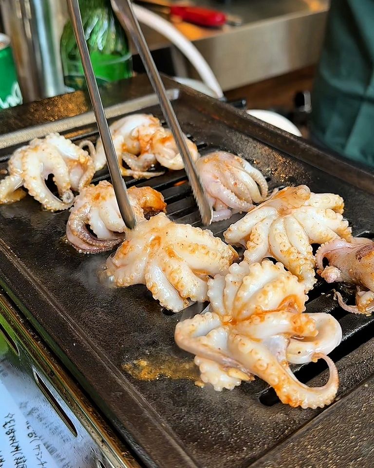 そしてこのイイダコが踊ってるみたいに焼かれていって可愛いし、めちゃくちゃ美味しいです!プリプリの食感と濃厚な旨みが口いっぱいに広がってたまりません。