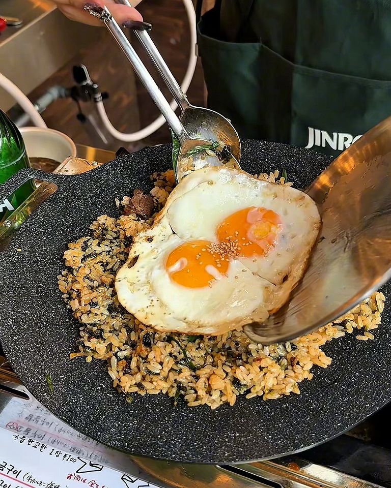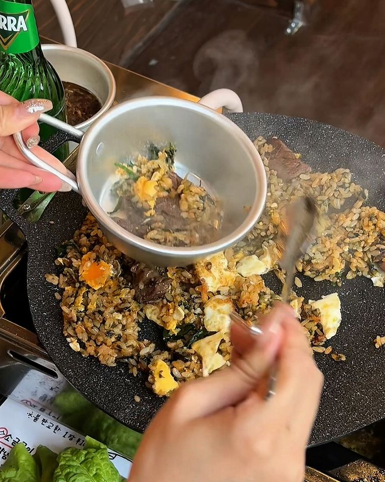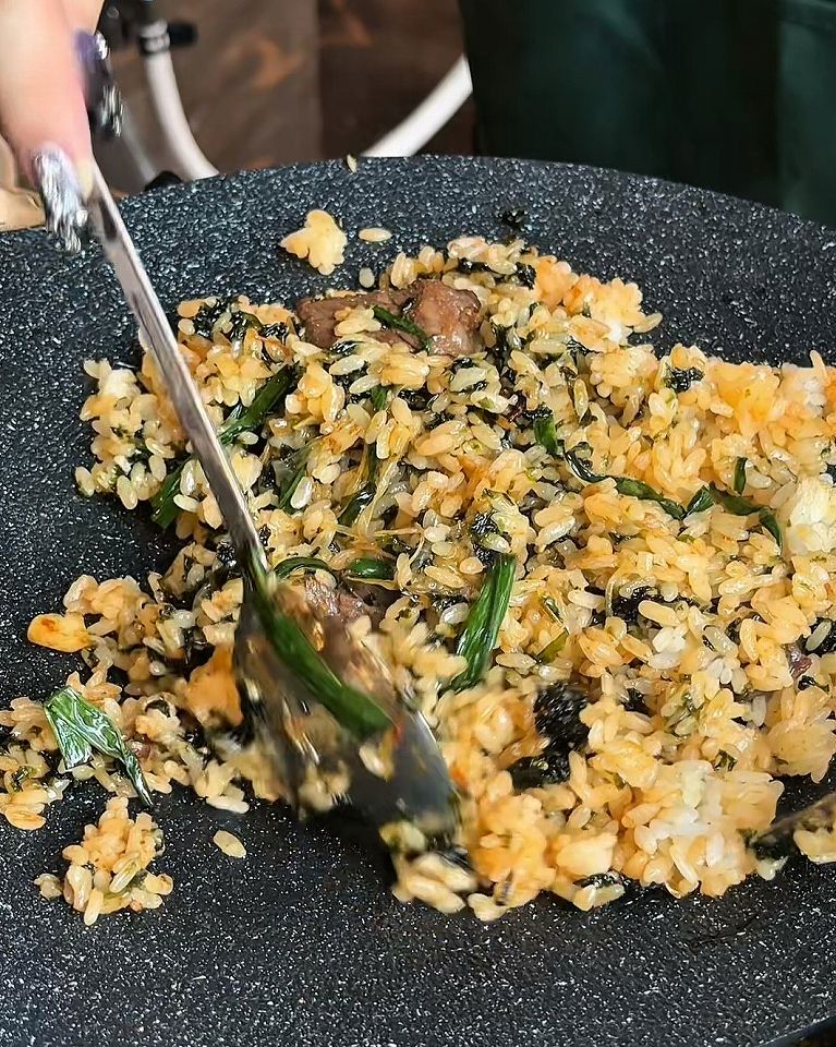 残ったお肉と一緒に作ってくれる締めの焼き飯です。ジュワッと広がる肉汁と香ばしいおこげが絶妙です。
