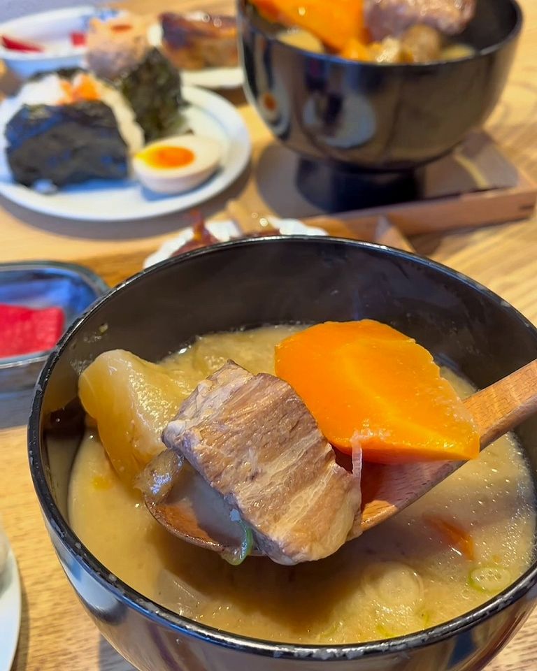 MISOJYUのお味噌汁は思った以上に具が大きくて、食べ応え抜群です!ボリュームはあるのに味は優しく、ほっと一息つける美味しさです。