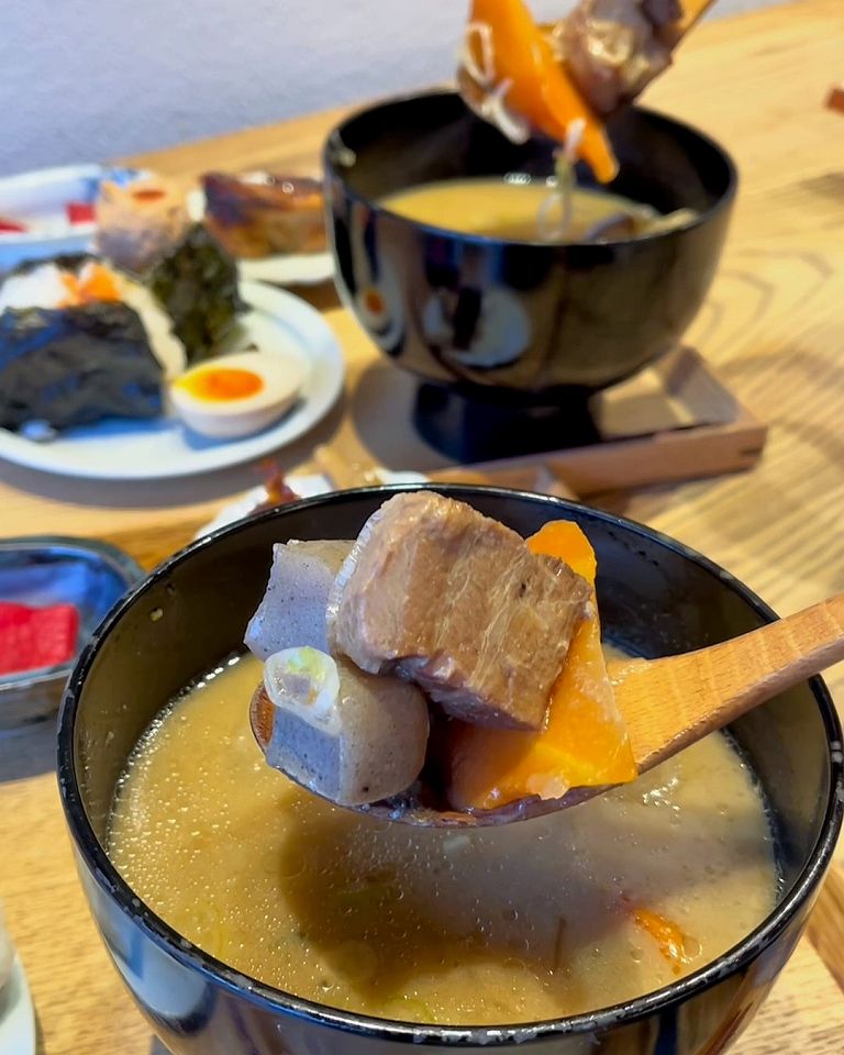 - お味噌汁は思った以上に具が大きくて食べ応え抜群