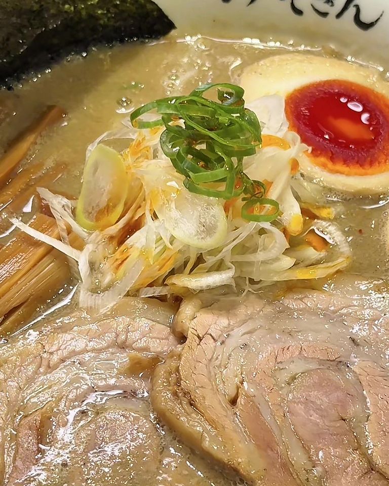 - 白濁したスープに色の濃い煮卵、でっかくて柔らかいチャーシュー
