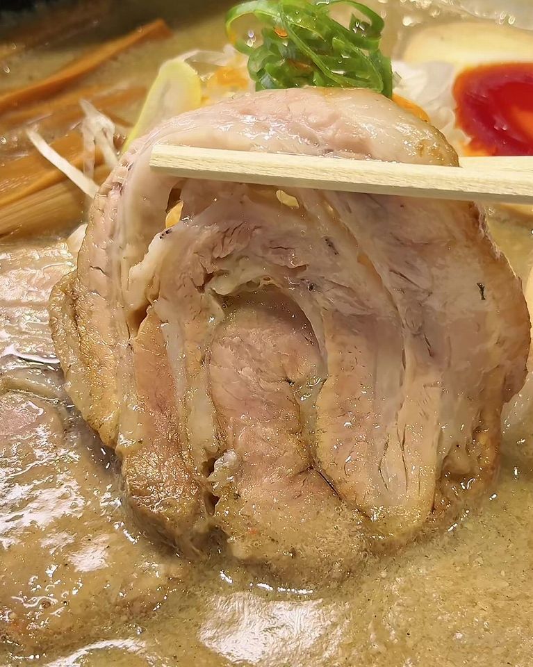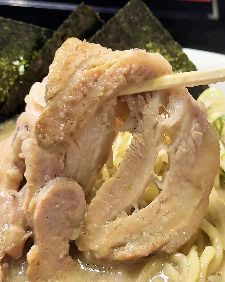 チャーシューはでっかくて柔らかいです。スープとの相性も抜群で、一口で病みつきになります。