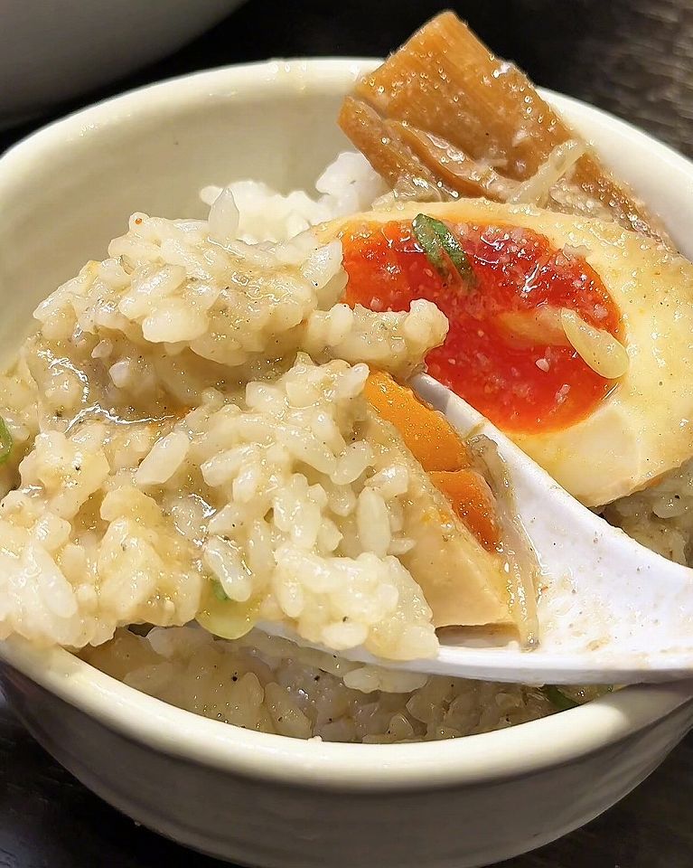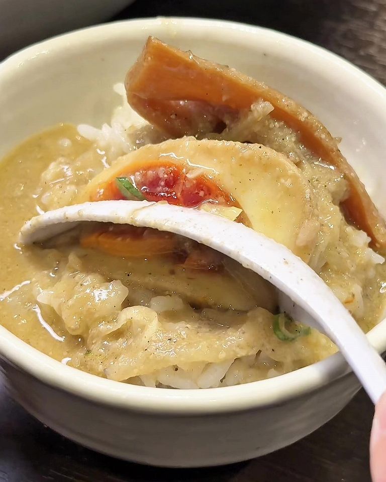このスープは、最後はライスに絡めて食べたらもうやみつきになる美味しさです。スープの濃厚な旨みがご飯に染みて絶品です。