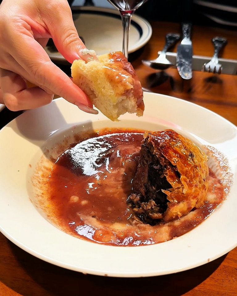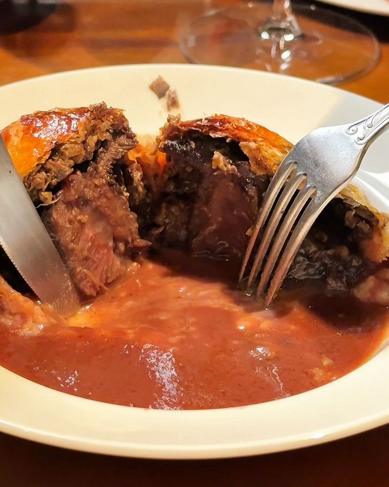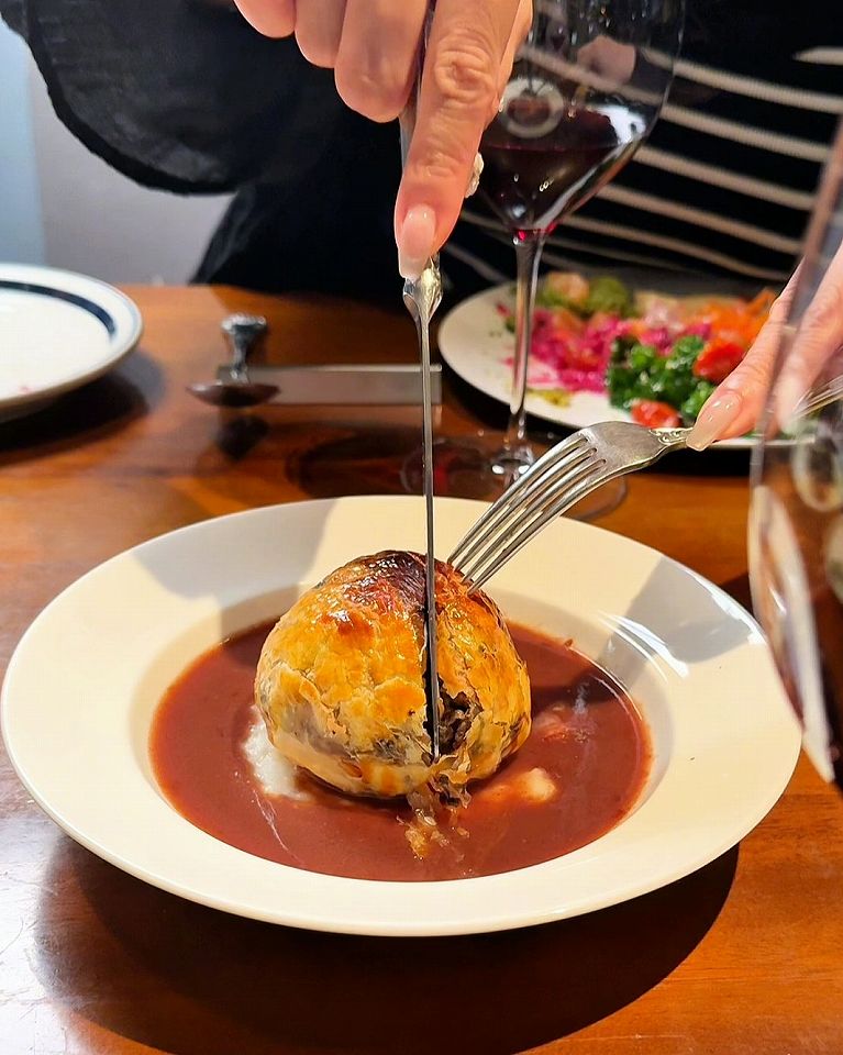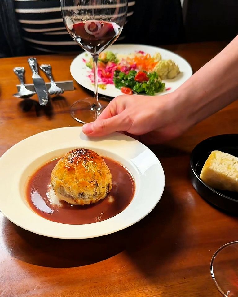 - 昔から変わらない名物「牛頬肉のパイ包み焼き」
