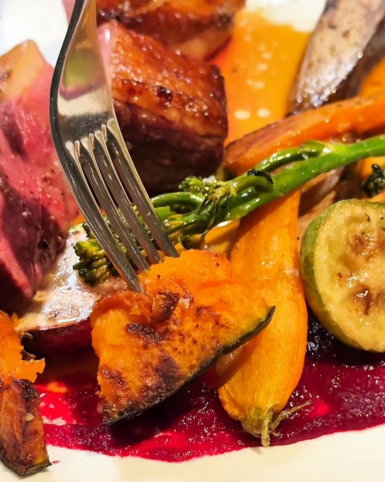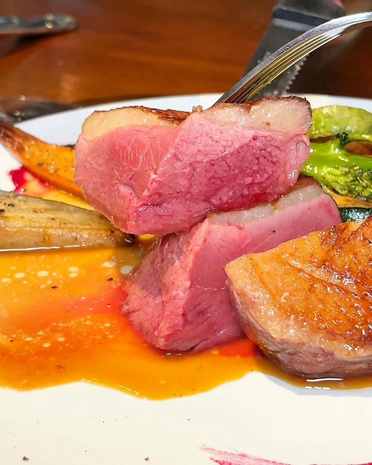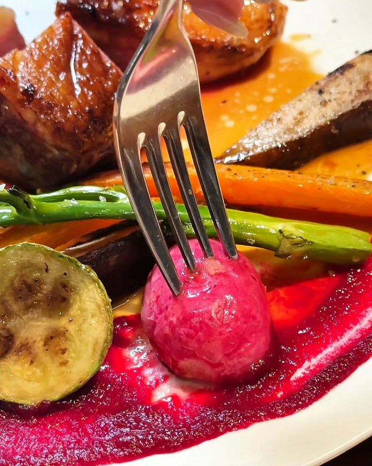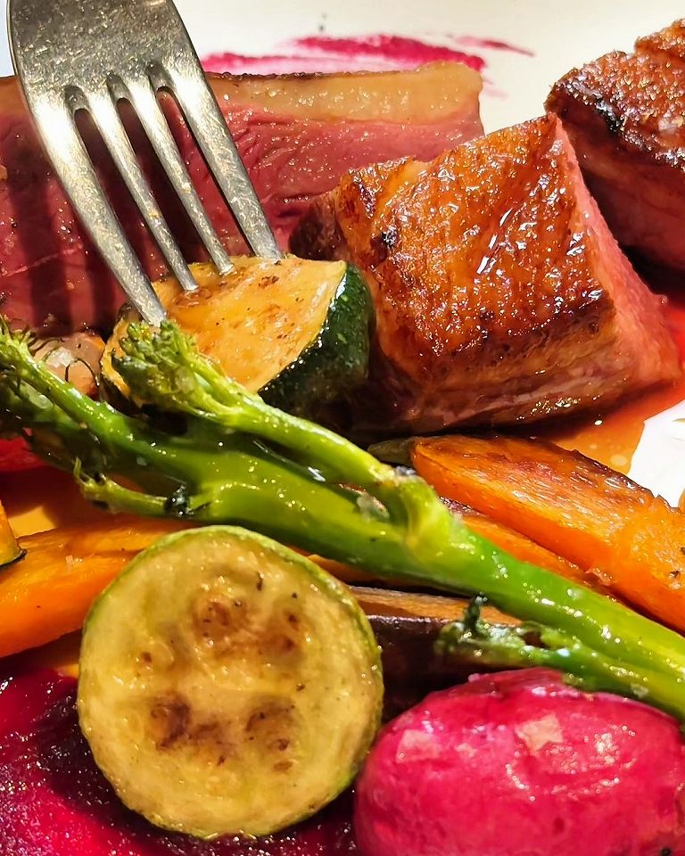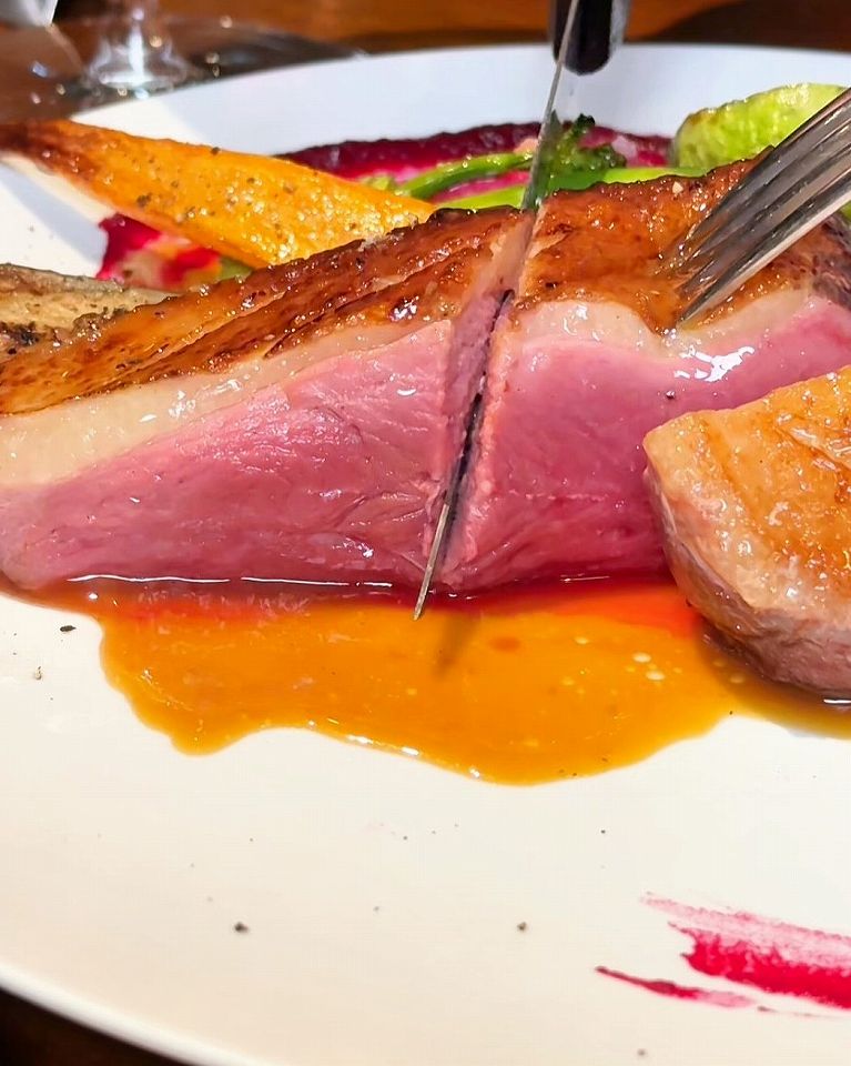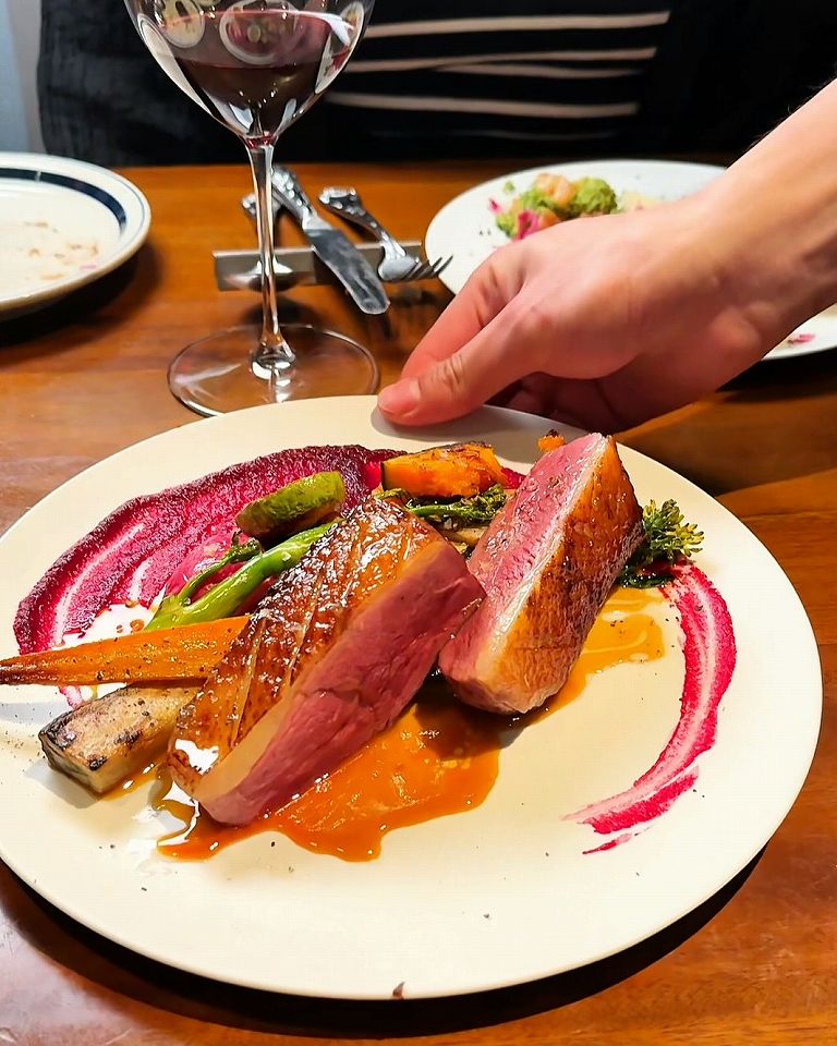 そして昔から変わらない名物がこの牛頬肉のパイ包み焼きです。鴨のローストも火入れが最高に素晴らしく、契約農家から直接届く有機野菜がまた美味いです!ここ以上の自然派ビストロは他には無いですね。料理もワインも妥協なく選び抜かれ、老舗だからこその味を堪能できます。