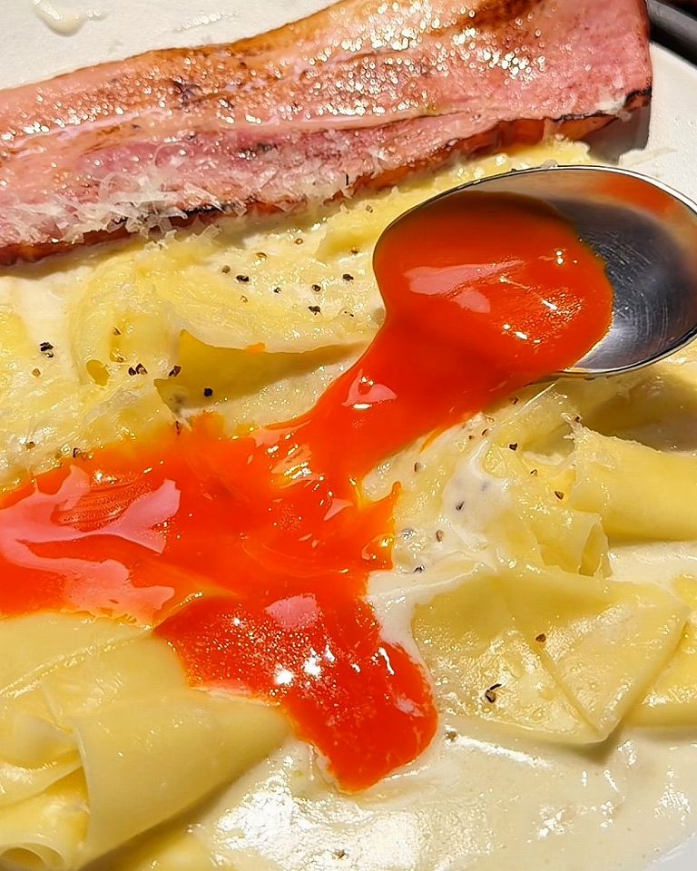 あとはこの厚切りベーコンステーキカルボナーラもオススメです!