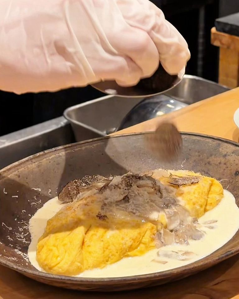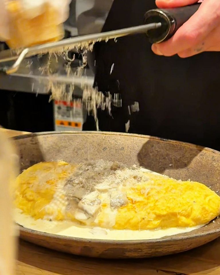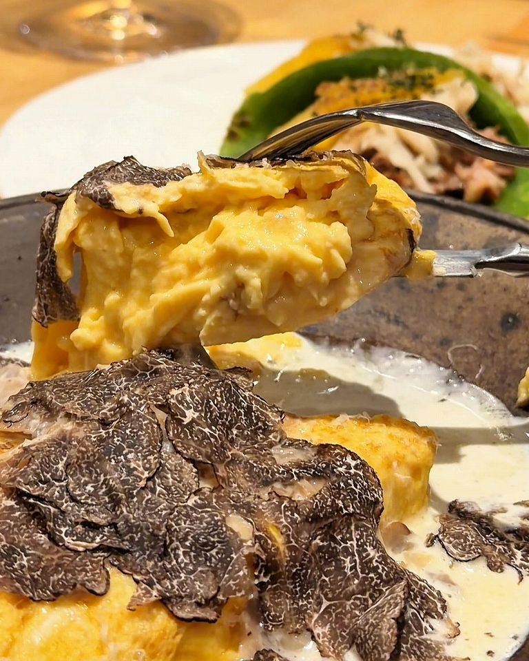 とろとろのホワイトソースが決め手のトリュフオムレツは、たっぷり乗せられたトリュフがいい香りで、贅沢な味わいでした。