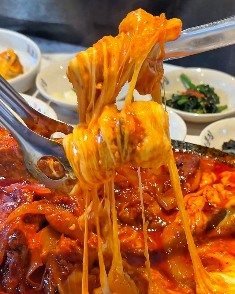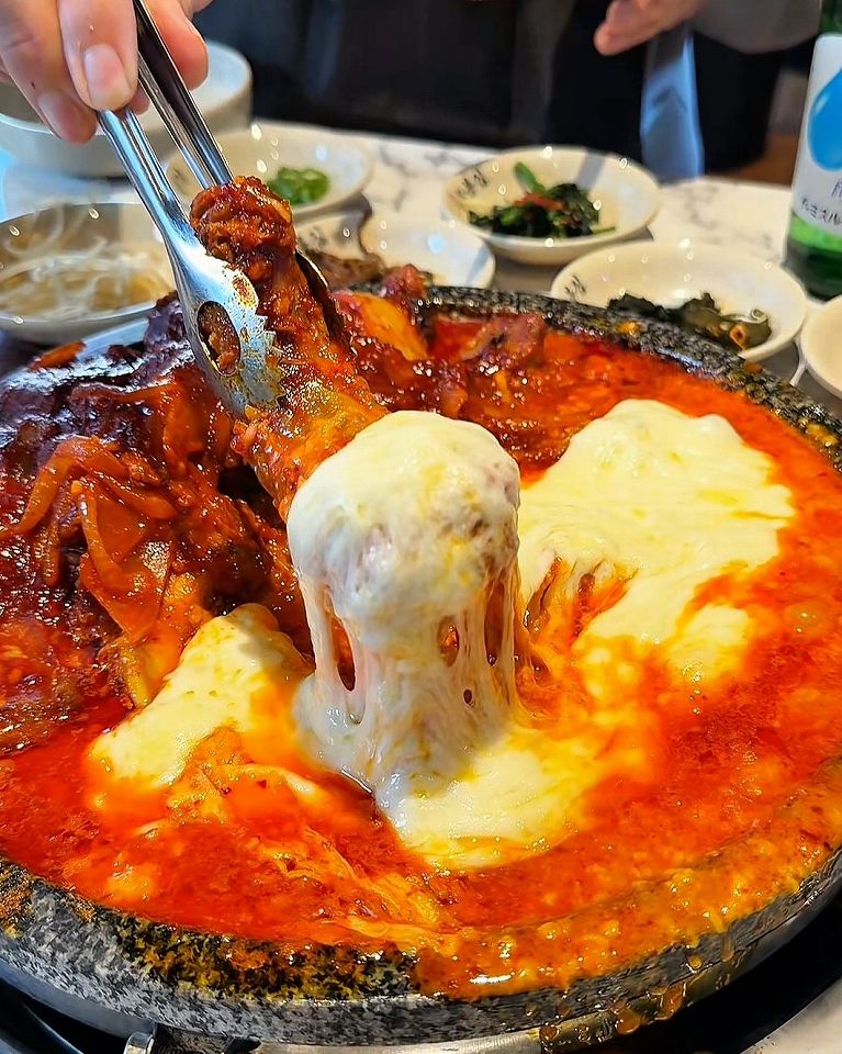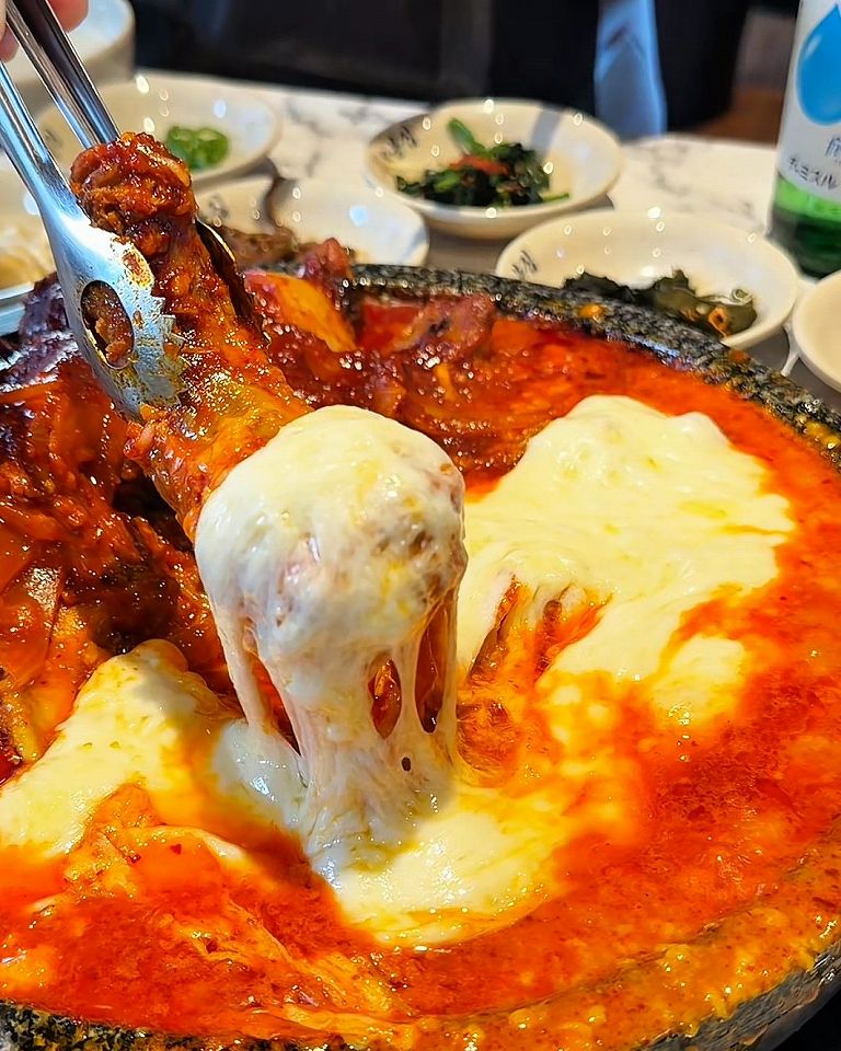• スペアリブにたっぷりのチーズを絡める韓国で人気のチーズドゥンカルビは、お肉がトロトロで最高にうまい