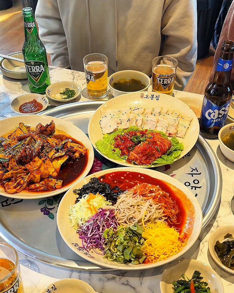 オボンジップ 新大久保店には、テナガダコとマルチョウとエビの鍋の「ナッコプセ」や、辛旨のタコが入ったうどん「カルナクチ」など、本場の韓国料理が盛りだくさんです。