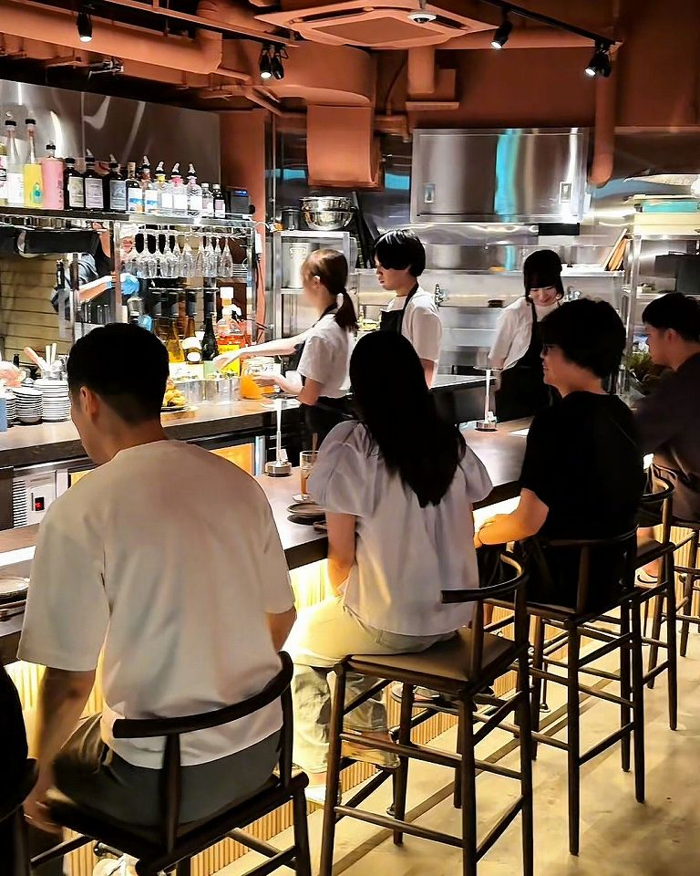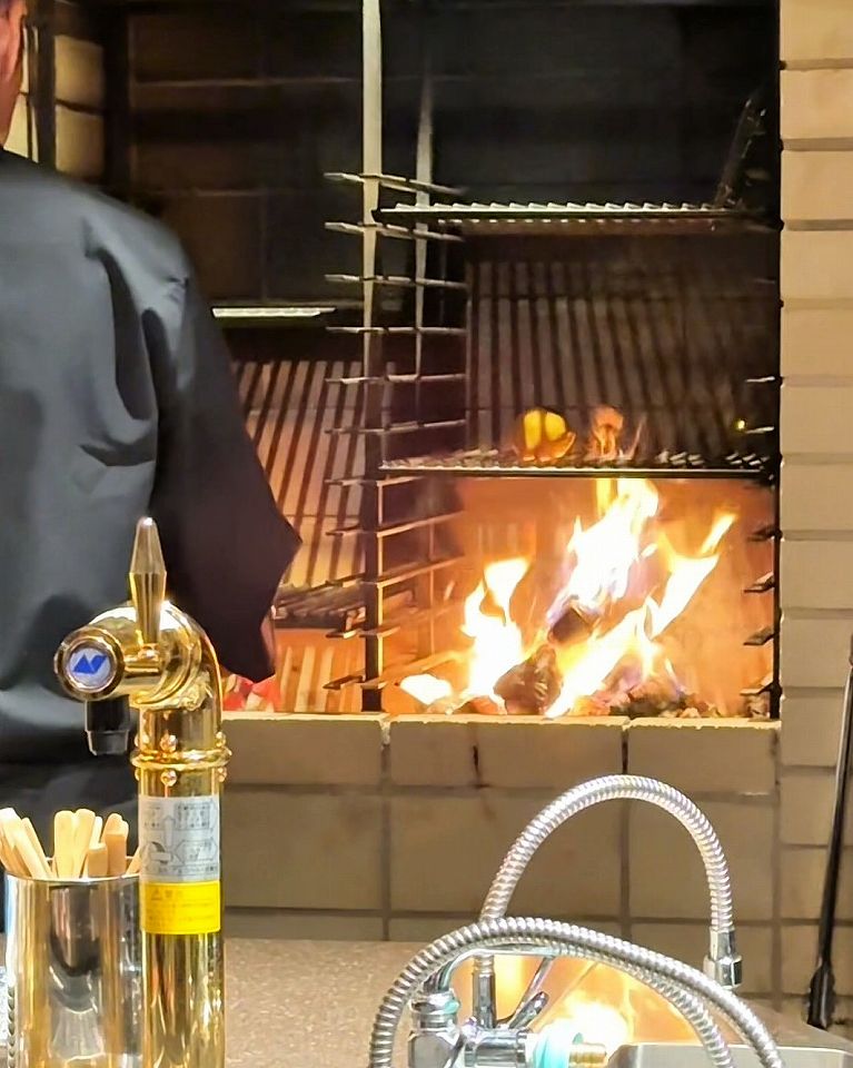 - ライブ感あるカウンターメインで薪焼き料理がメインの店