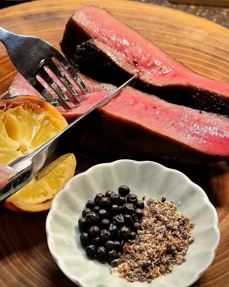 そして薪の香りが宿り、味噌と赤ワインでグツグツに煮込まれた超粗挽きの肉バーグも絶品です。肉の旨味が広がり、粗挽きの食感が病みつきになります。