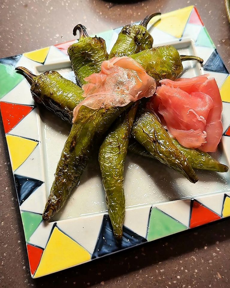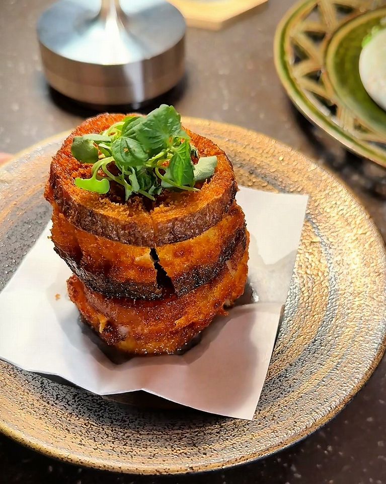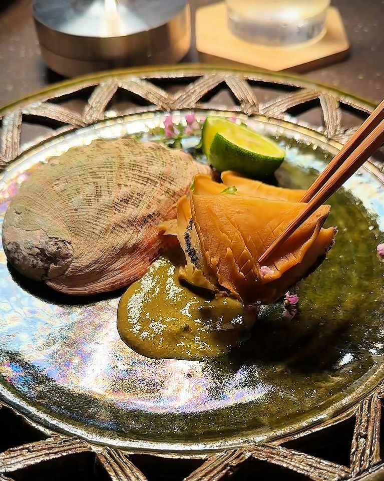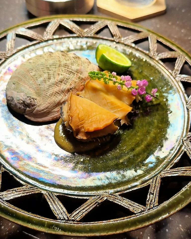 そして蒸し鮑に肝のソース、箸が進む蓮根キムチの挟み揚げや万願寺とうがらしの甘みに生ハムの塩味、どれも素晴らしいです。魅力的な逸品料理がこんなにあるなんて幸せ過ぎます!ひとつひとつの料理にシェフのこだわりが詰まっていて、素材の持ち味が丁寧に活かされています。