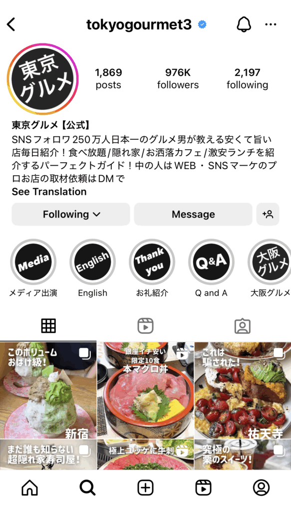 東京グルメのノウハウを一つずつ実践していくことで、アカウント開設から順調に売上・フォロワー数を伸ばし、現在では約30万人のフォロワーを獲得し、大阪の有名なグルメアカウントの1つとして、多くの人に閲覧されています。