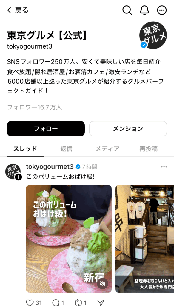埼玉グルメと申します。Instagramが21万人、TikTok 13万人、YouTube 4万人、東京グルメのパートナーとして今2年ぐらい活動しています。よろしくお願いします。
