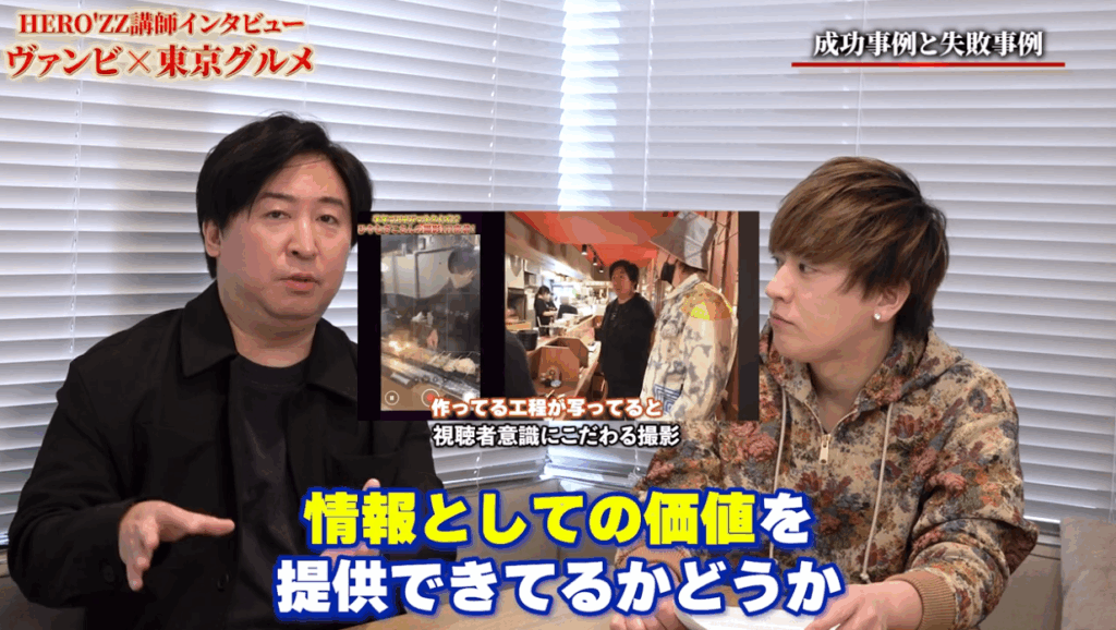 東京グルメから直接アドバイスを受けることによって、すぐに動画が伸び始めてフォロワーがふえたり、再生回数が伸びたということ、そして、動画以外にもビジネスノウハウ、自分にもともとビジネスノウハウが全然無かったところから、クライアントとのやり取りであったりとか、そのほか、どういうふうに付き合っていったらいいかということが学べたのがかなり大きかったです。