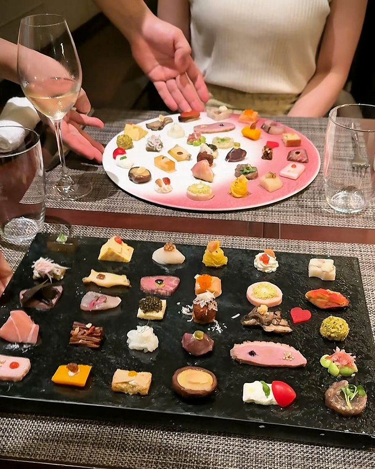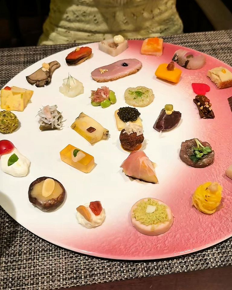 最初に出てくる30種類の前菜がこのお店のスペシャリテで、宝箱をひっくり返したような色とりどりの前菜は誰もが喜ぶはずです!彩り豊かな丁寧な盛り付けが美しく、まるでアートのようで目でも舌でも楽しめます。