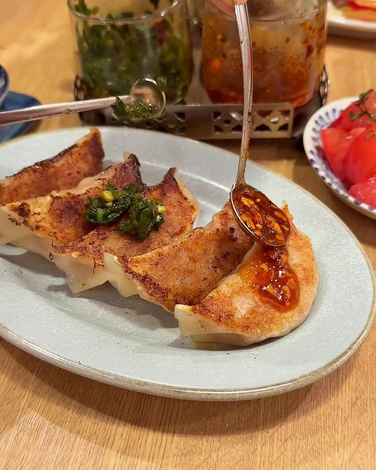 そして、この和牛の餃子はお好みの調味料でいただきます。食べたら口が肉汁で溢れるんですよ!