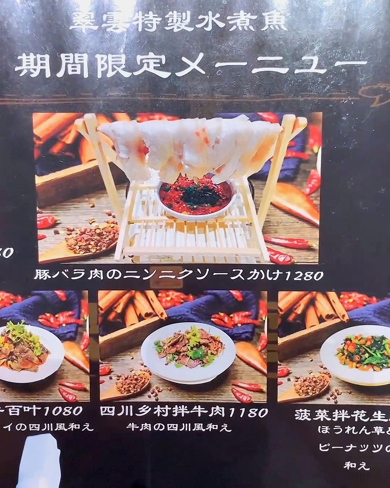 翠雲(すいうん)では他にも、「唐辛子と鶏肉炒め」や「よだれ鶏」「四川風豚肉の蒸物」「ラムスペアリブの四川風炒め」など様々な本格中華を楽しめます。