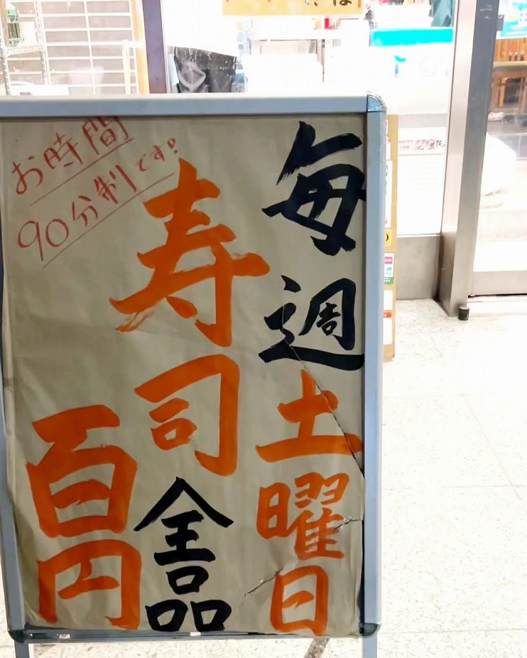 新宿にある「鮨のだり半」は、毎週土曜日にお寿司が全品100円で激安になります!活気のある店内です。メルマガ登録でビールもタダになりました!気軽に美味しいお寿司を思う存分堪能できます。